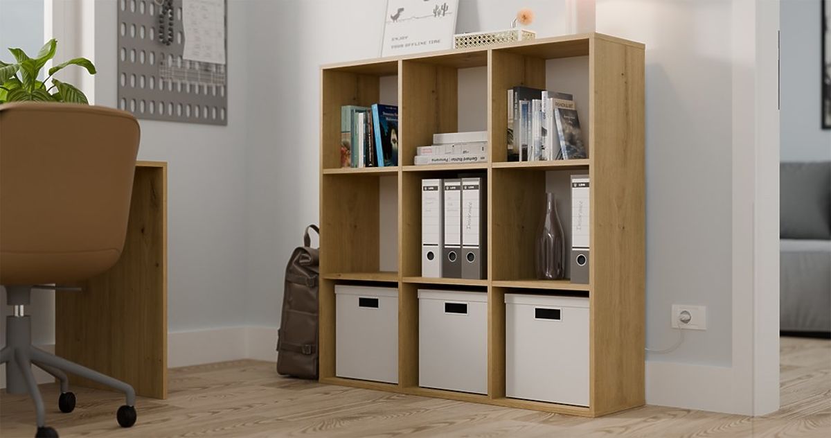 Banaby.si » Knjižne police, police in regali / Regali / REGAL MALAX 3x3 H HRAST ARTISAN S TRDNIM HDF ZADNJIM PANELI 110x110 CM