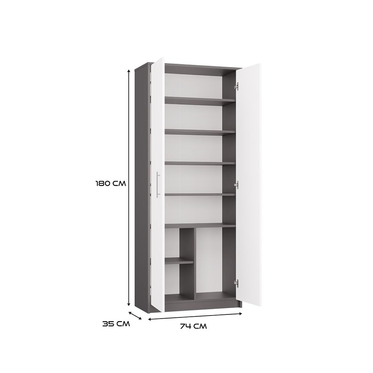 Regal OLIV 2D je kombinacija elegance in praktičnosti, ki se prilega različnim notranjim prostorom – dnevni sobi, pisarni, otroški sobi ali delovni sobi. Zaradi premišljene razporeditve polic lahko enostavno organizirate dokumente, knjige, mape in druge predmete ter ustvarite harmoničen in estetski prostor.