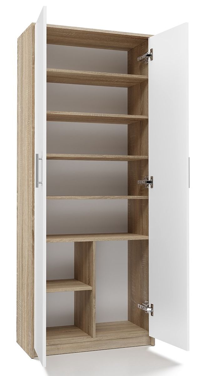 Regal z 8 policami in 2 vrati v beli in hrast sonoma barvi. .. več