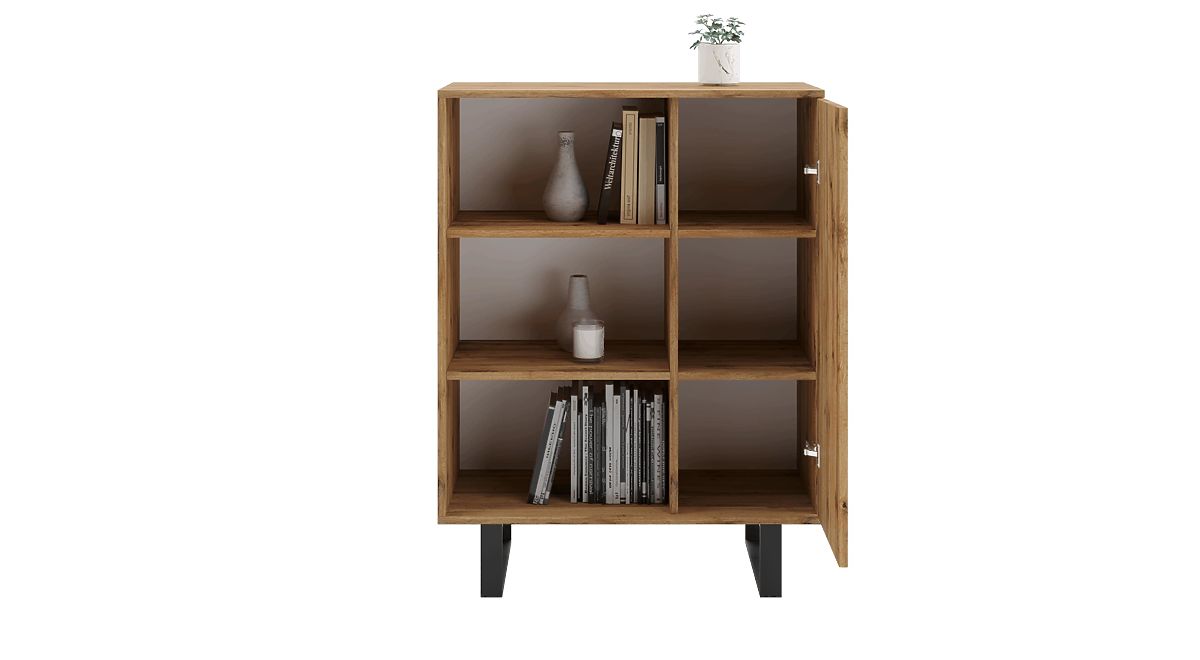 Omara FONDI je izjemno funkcionalno pohištvo za vašo dnevno sobo, ki združuje preprostost z privlačnim videzom, navdihnjenim z loft stilom. Zaradi minimalističnih oblik in surovih materialov, kot so kovinski elementi in les, prinaša omara v notranjost edinstveno vzdušje in značaj. Je idealna rešitev za tiste, ki cenijo praktičnost in sodoben dizajn v enem. Omara FONDI je tako funkcionalna kot estetska, ponuja prostor za shranjevanje in možnost razstavljanja priljubljenih dekoracij.