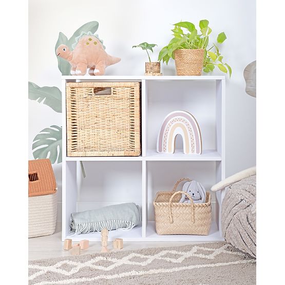 Sodoben regal REGI je odličen funkcionalen dodatek ne samo za otroško sobo. Zaradi svoje univerzalne bele barve se prilega tako fantovski kot dekliški sobi. Prostor za shranjevanje se lahko uporablja kot knjižnica, odlagalna polica ali v kombinaciji s škatlo za shranjevanje kot predal.