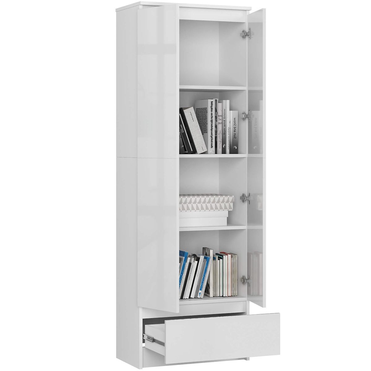 ZAPRTA KNJIŽNICA CLP 60cm 1 PREDAL 2 VRATI Korpus - Bela | Čela - Beli Visoki Sijaj