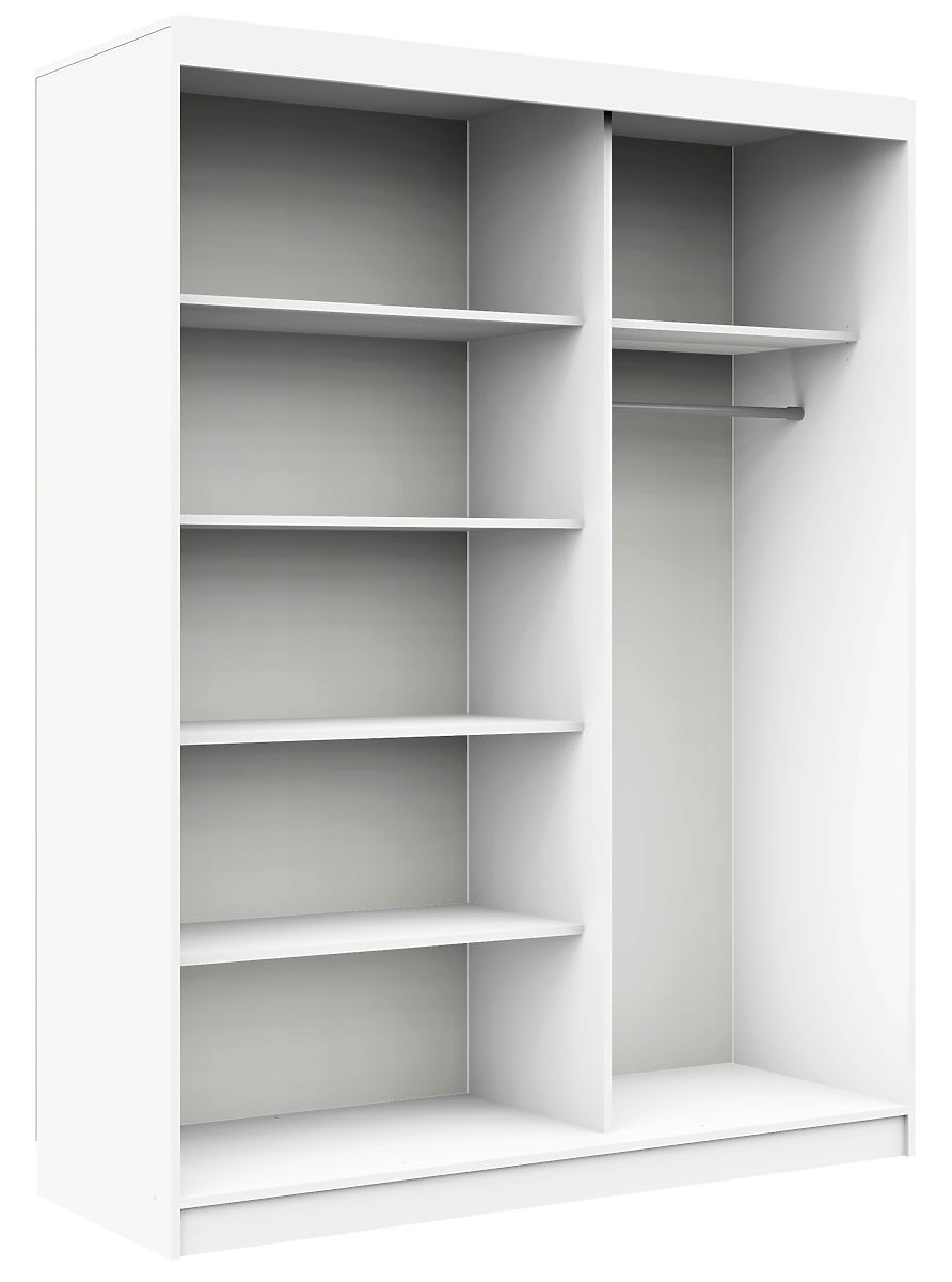 Dvodrsna omara 150 cm CLP z ogledalom je bel predlog, ki se bo zagotovo izkazal v spalnici, predsobi ali mladinski sobi. Pohištvo omogoča shranjevanje oblačil in številnih drugih predmetov, zagotavlja prostor za obešanje jaken, suknjičev, srajc, oblek ali dolgih plaščev ter praktične police. Ta predlog združuje eleganten, minimalističen videz in visoko kakovost, ki je rezultat kakovostnih materialov in skrbi za vse podrobnosti. Pohištvo je opremljeno z velikim ogledalom, ki lahko optično poveča prostor.