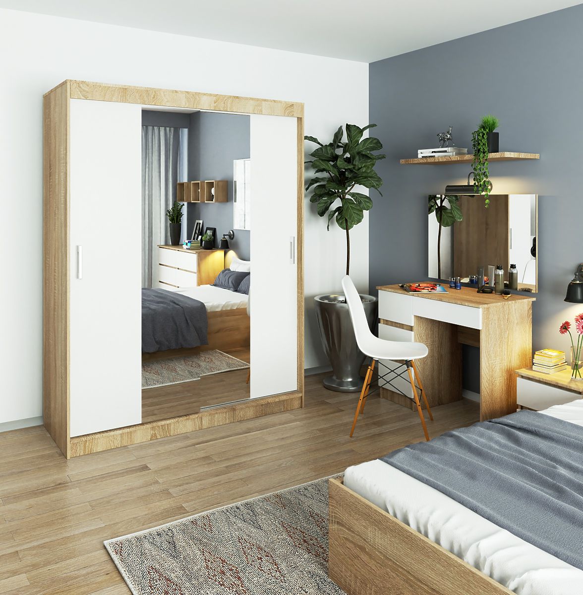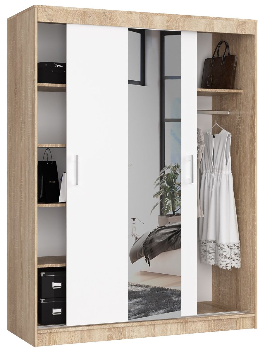 Drsna omara 150 cm CLP z ogledalom v barvah sonoma in bela. .. več