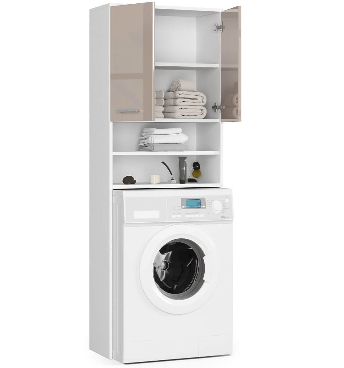 Omarica nad pralni stroj z dvema vratoma in cappuccino sijajem. .. več