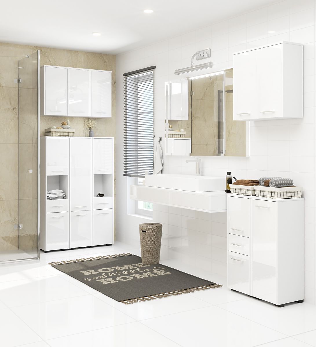 KOPALNIŠKA OMARICA FIN 2 VRATA BELA / BELI SIJAJ Izdelana iz laminirane plošče 16 mm, odporne proti obrabi.