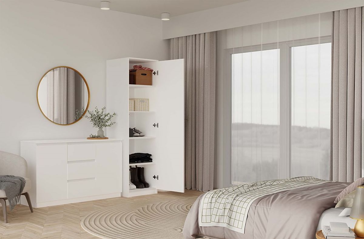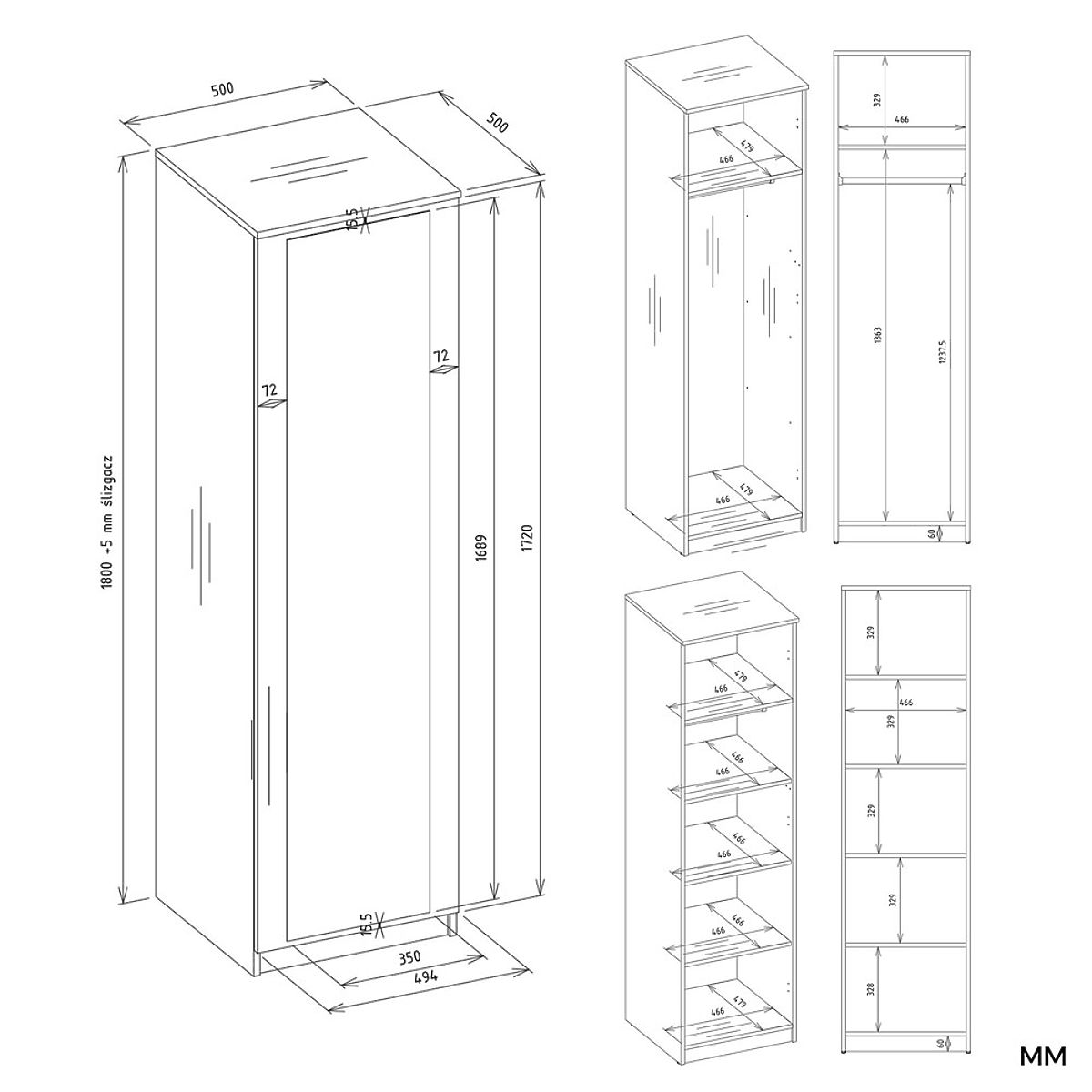 Omara SD-50 Z OGLEDALOM je sodobno in funkcionalno pohištvo, zasnovano za udobno shranjevanje v manjših prostorih – spalnici, predsobi, garderobi ali pisarni. Zahvaljujoč sprednji strani z velikim ogledalom optično poveča prostor in mu doda lahkotnost, hkrati pa izpolnjuje praktično funkcijo vsakodnevne uporabe.