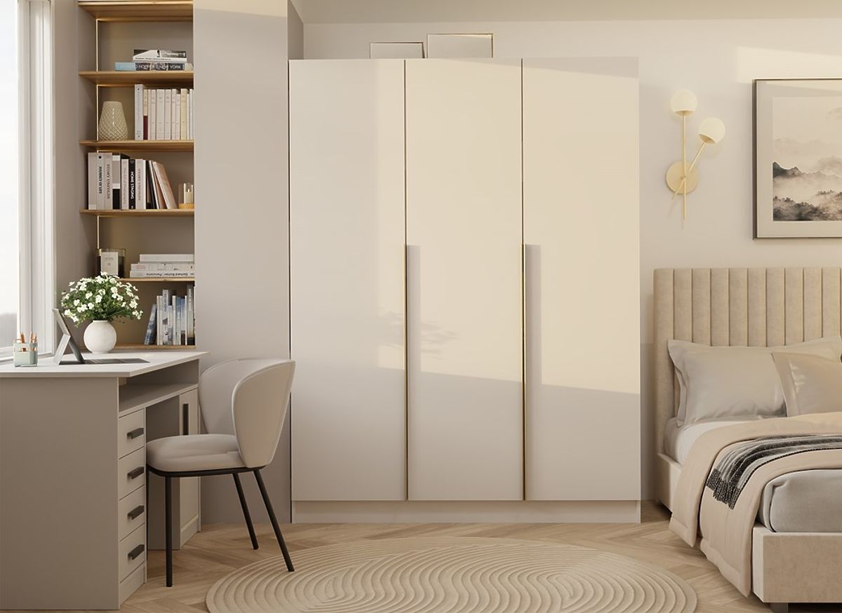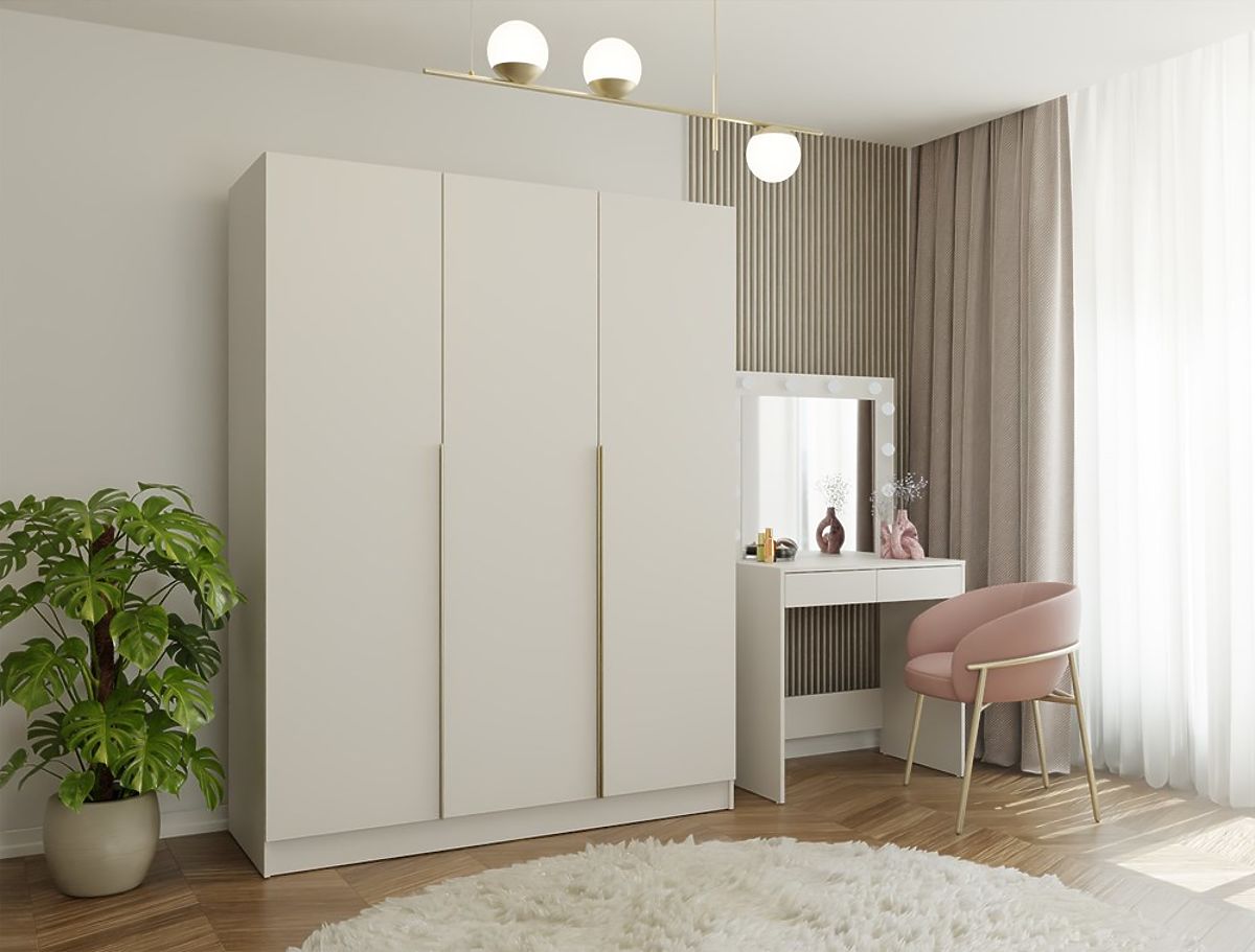 OMARA SENSO 3D 150 CM 3 VRATA ZLATI ROČAJI ZA DNEVNO SOBO SPALNICO KAŠMIR BEŽ