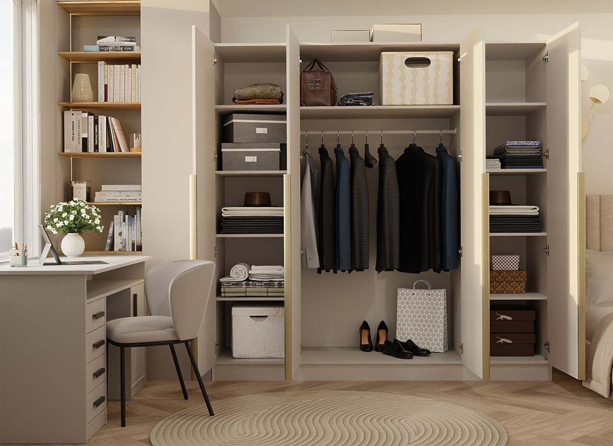 OMARA SENSO 4D 200 CM 4 VRATA ZLATI ROČAJI ZA DNEVNO SOBO SPALNICO KAŠMIR BEŽ
