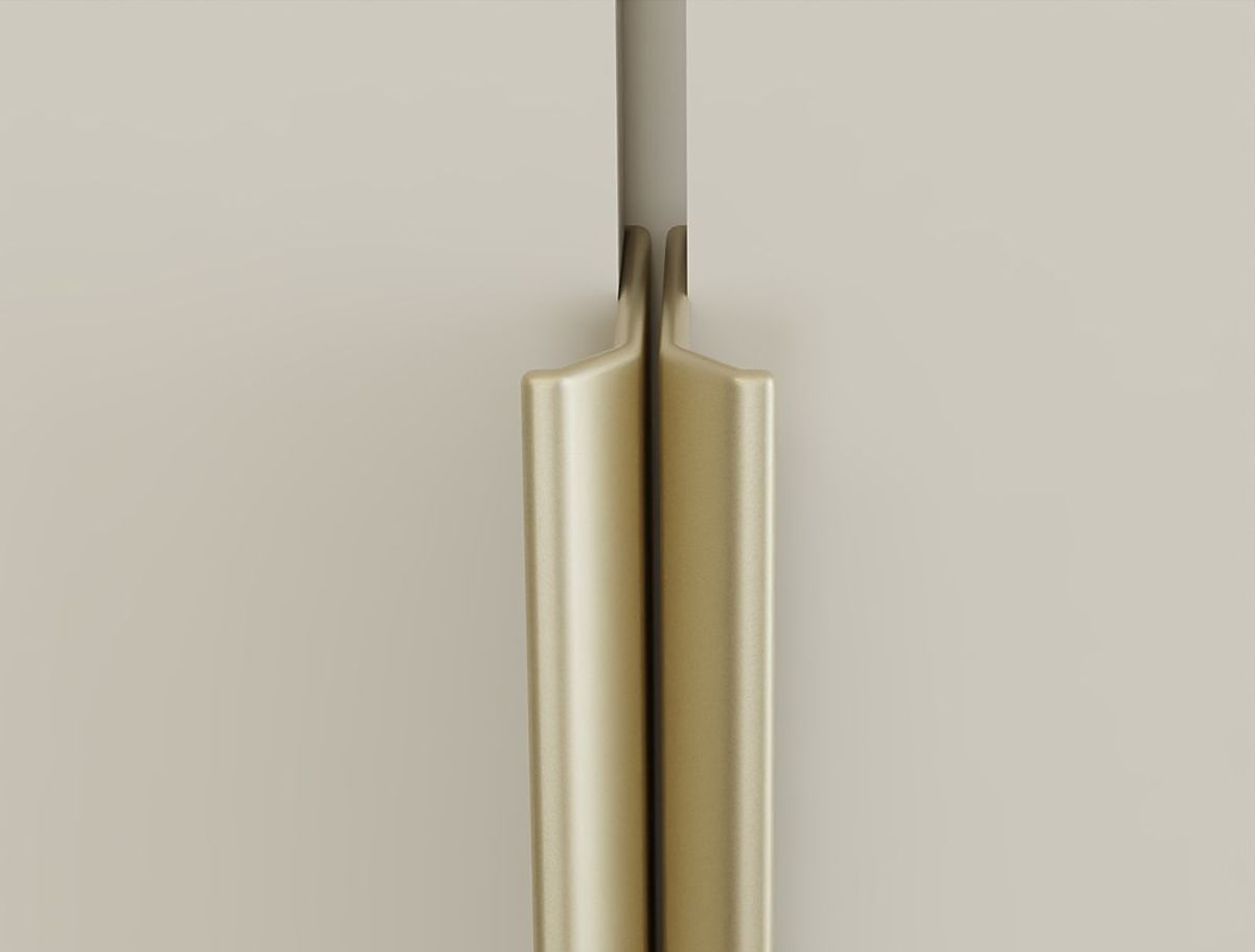 Minimalistična sprednja stran + dekorativni ročaji v barvi brušenega zlata – eleganca brez pretiravanja.