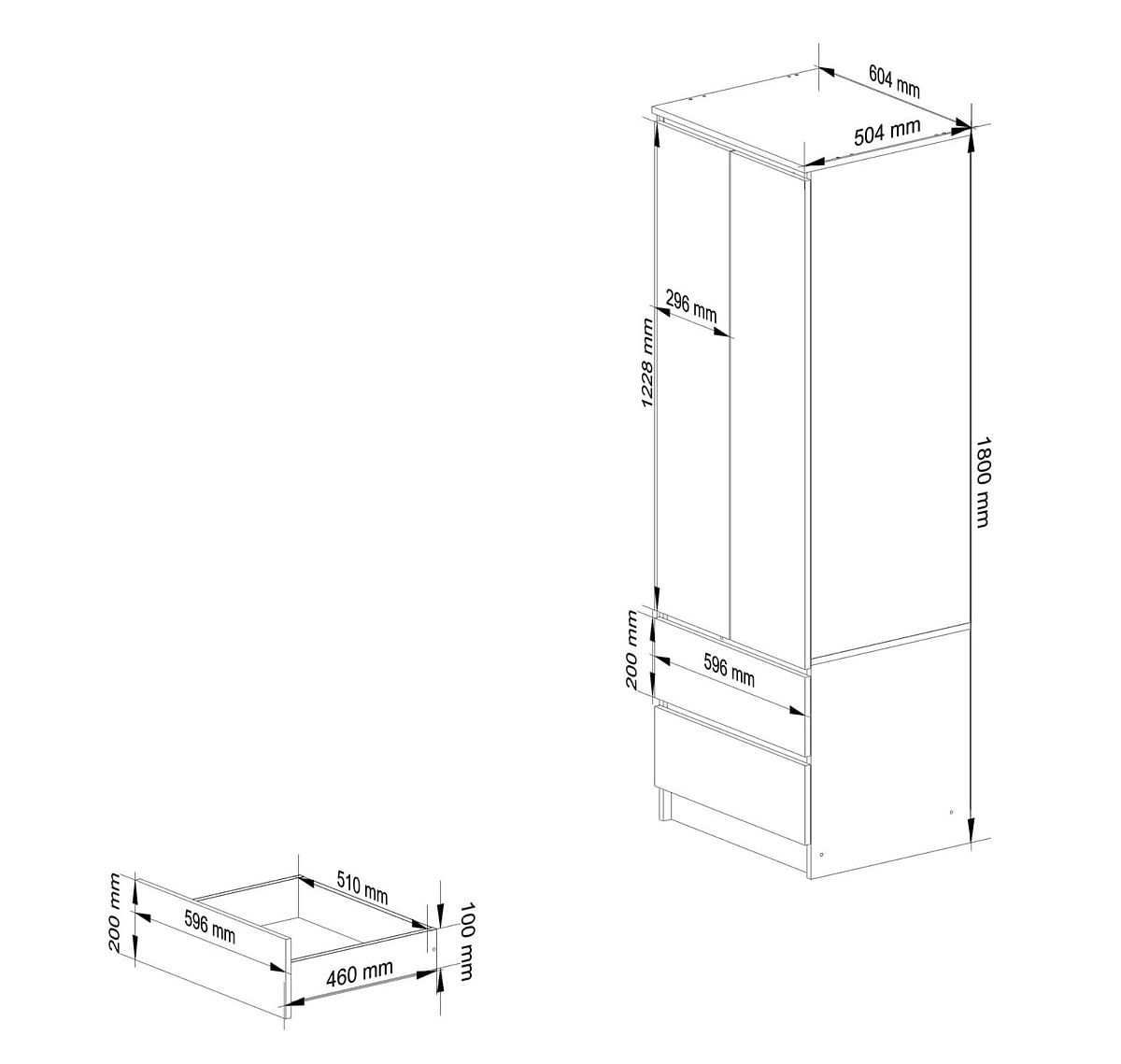 OMARA STAR K60 2 VRATI, 2 PREDALA Izdelana iz 16 mm laminirane plošče, odporne na obrabo.