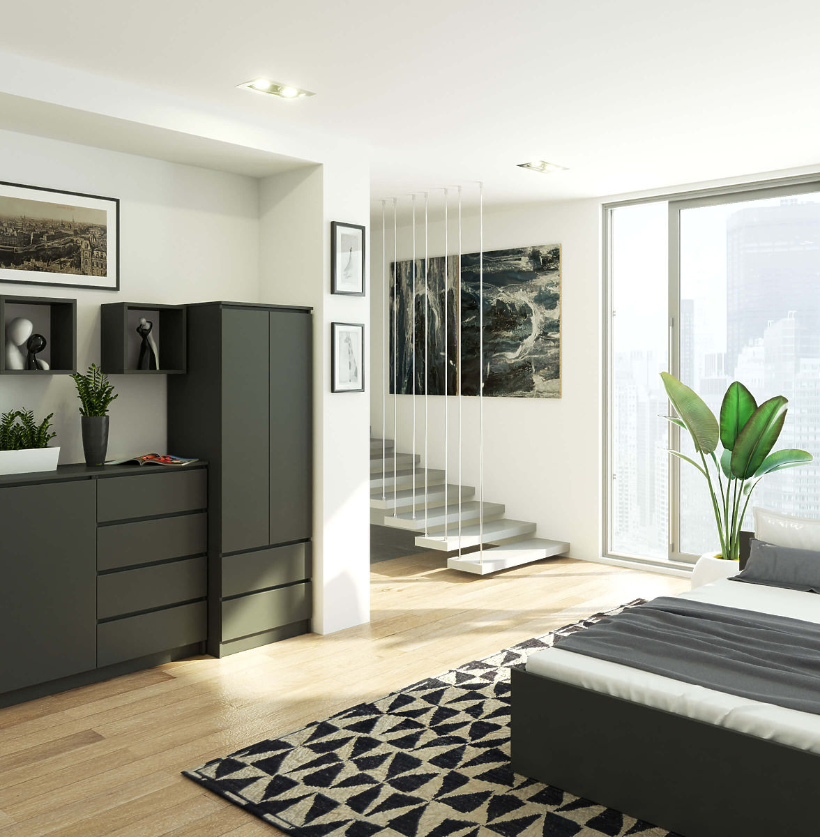 Omara z dvema vratoma in dvema predaloma v grafitno sivi barvi. .. več