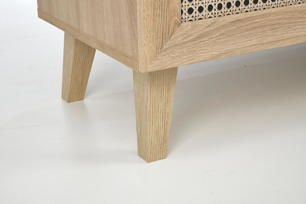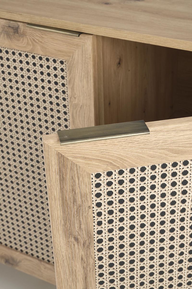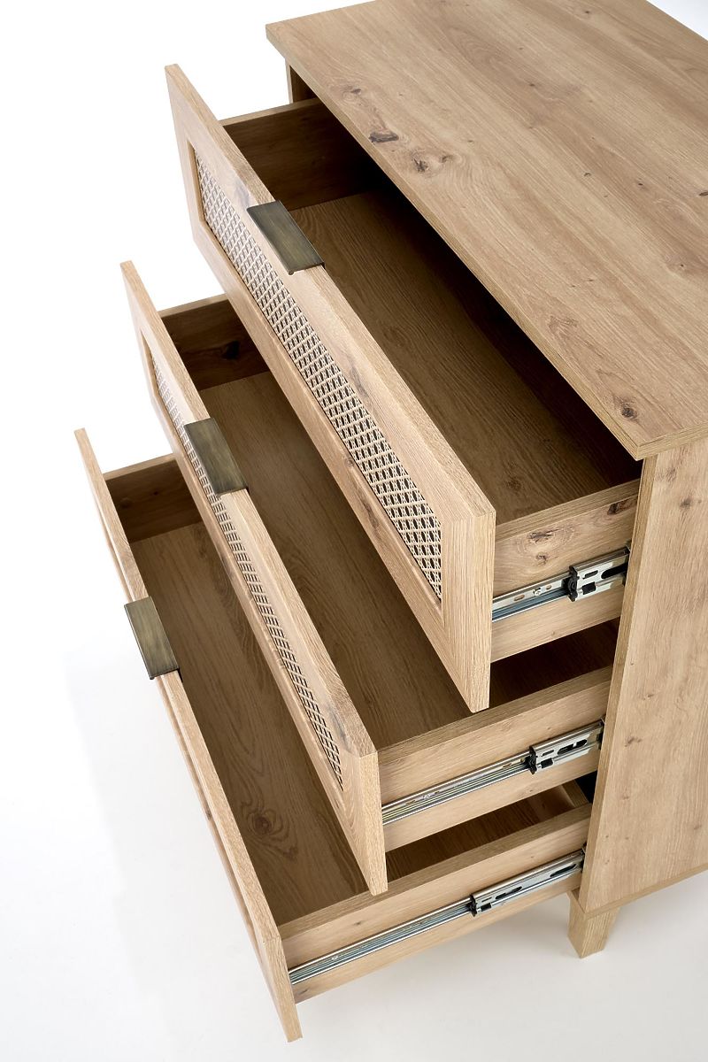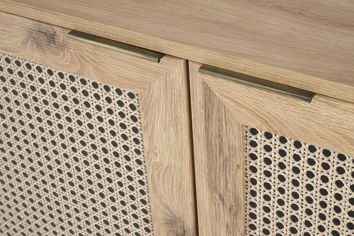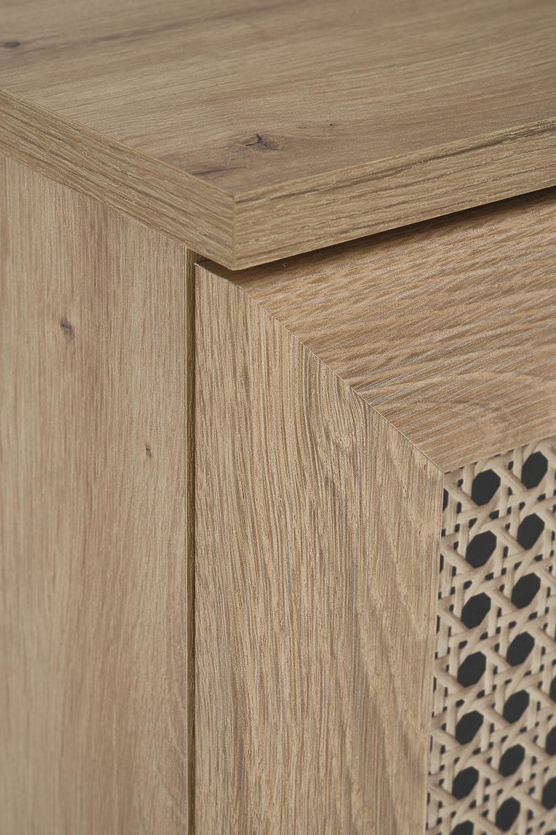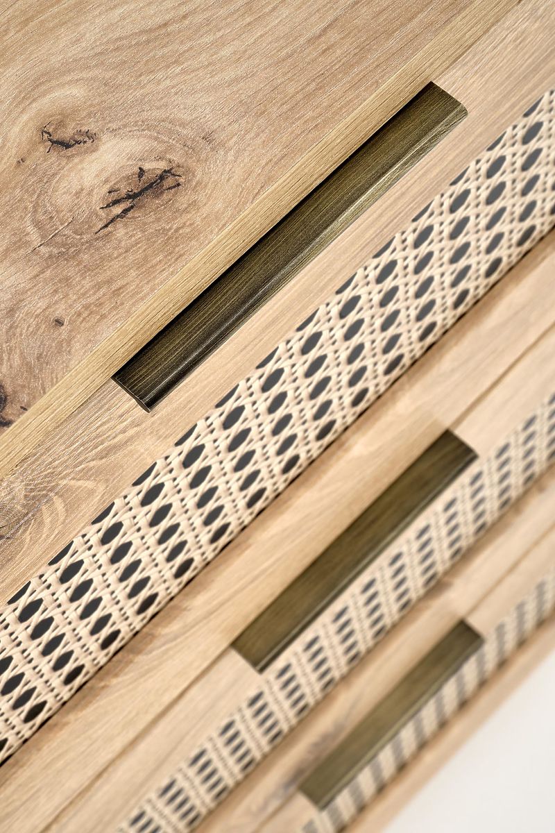 Dekor hrast artisan skupaj z modnimi vložki v vzorcu dunajske pletenice daje komodi edinstven boho pridih, ki takoj pritegne pozornost.