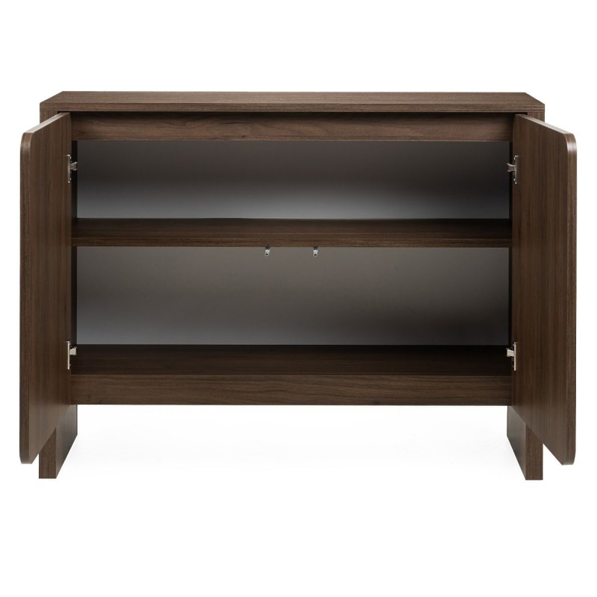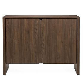 Dvovratna komoda Moku je kombinacija minimalističnega dizajna in funkcionalnosti. Izjemno zaobljene sprednje površine in barva oreh villa ji dajejo lahkotnost in eleganco, kar jo naredi primerno za vsak interier.