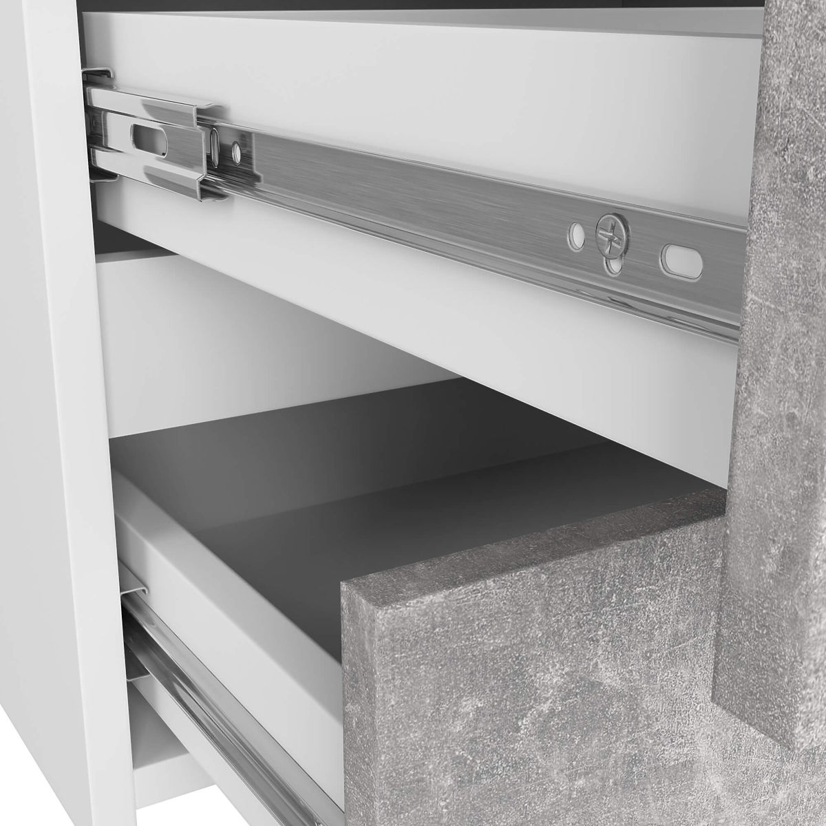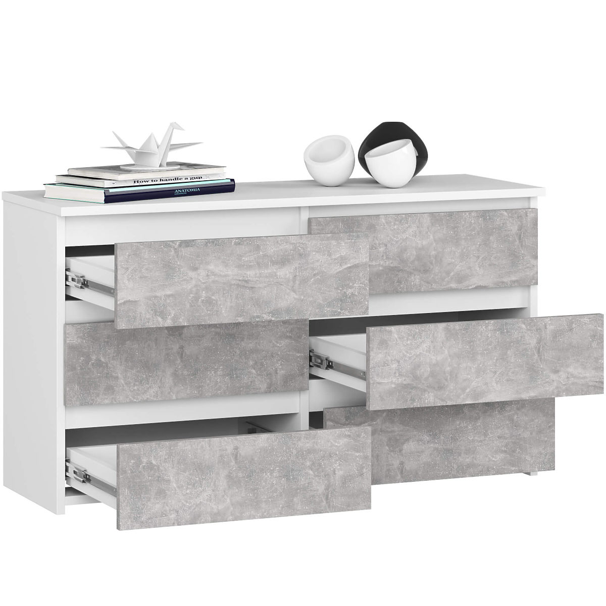 Bela komoda s šestimi predali in betonskimi frontami. .. več