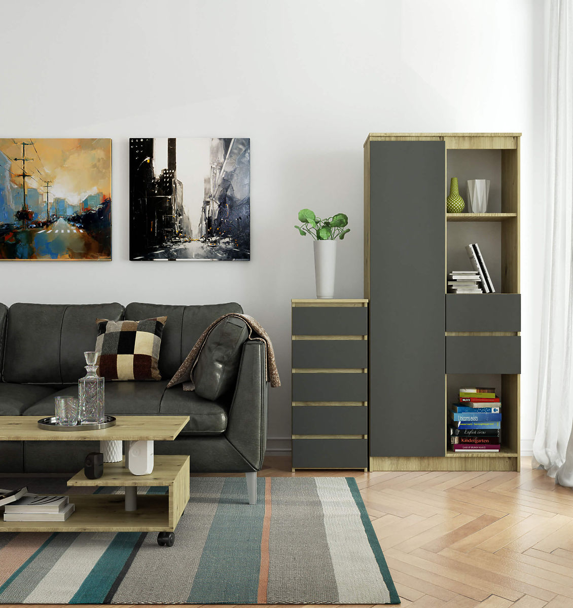 KOMODA CL5 5SZ HRAST ARTISAN / GRAFITNA SIVA
