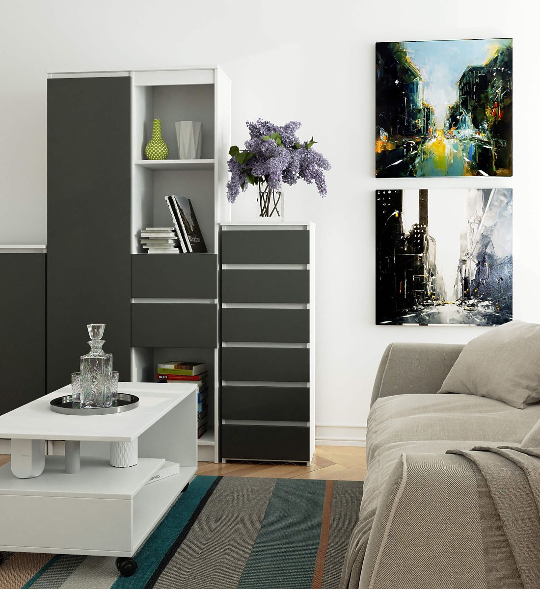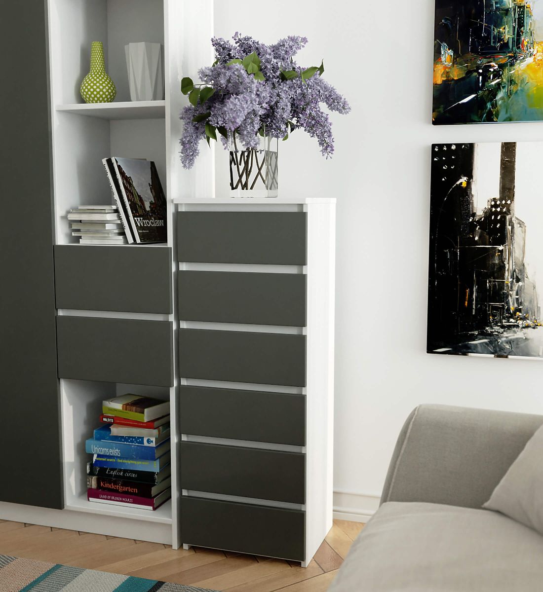 KOMODA CL6 6SZ BELA GRAFIT SIVA
