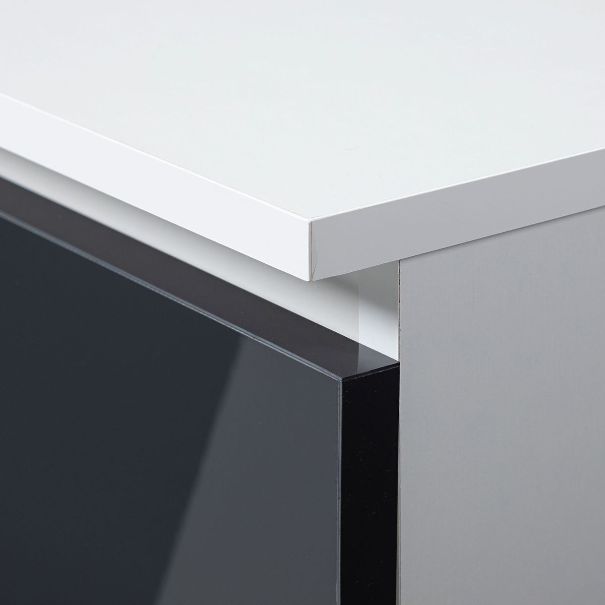 - Korpus komode izdelan iz laminirane plošče bel mat 16mm, odporne proti obrabi