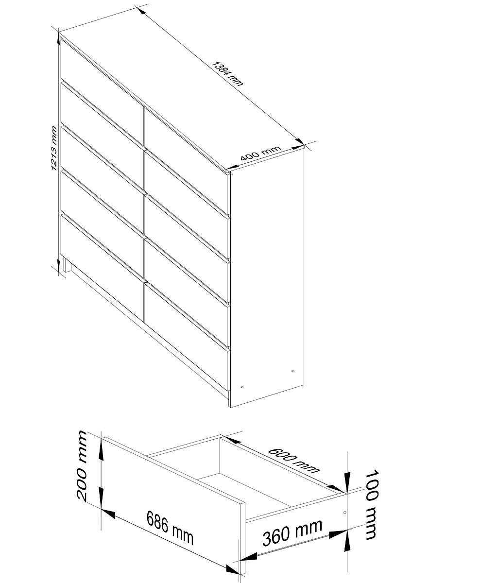 Trden pohištveni kos iz naše ponudbe je priljubljen med strankami, ki imajo raje klasični minimalizem. Predstavljena komoda K140 pritegne s preprosto obliko, univerzalno barvno shemo (hrast sonoma) in praktičnimi rešitvami. Osredotočamo se predvsem na kakovost, ponujamo pohištvo, izdelano iz trpežnih in kakovostnih materialov. Naš priporočeni model z desetimi predali se odlično prilega dnevni sobi, spalnici ali pisarni, pa tudi mnogim drugim prostorom, ki jih želite opremiti na moderen in funkcionalen način. Dobra kakovost po nizki ceni bo zagotovo razveselila ljubitelje sodobnih rešitev. Priporočamo tudi, da se seznanite z drugimi kosi pohištva iz te kolekcije - vse komode se odlikujejo po trdni izdelavi in trpežnih materialih, iz katerih so izdelane.