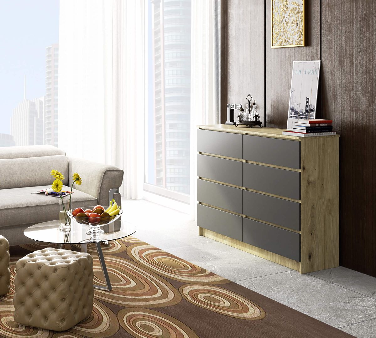 Komoda z osmimi predali v hrastu Artisan in sivi barvi. .. več