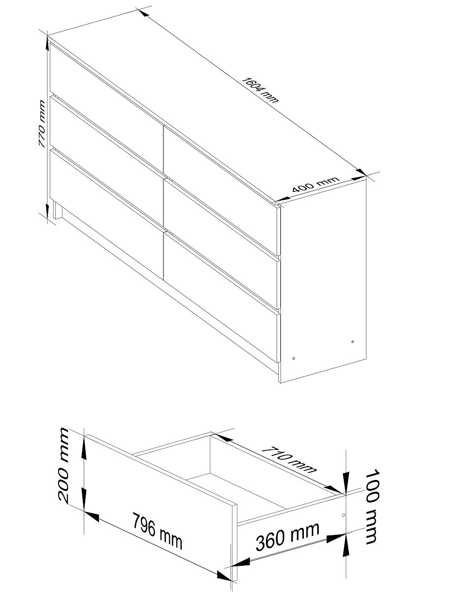 Naša ponujena komoda se odlikuje s kombinacijo privlačne cene in odlične kakovosti. Izdelek je bil izdelan z veliko skrbnostjo in se odlikuje s trdno konstrukcijo. Komoda K širine 160 centimetrov je bila izdelana iz laminirane plošče debeline 16 milimetrov. Kaže visoko odpornost proti obrabi. Robovi so oblepljeni z ABS robom. Višina komode je 77 centimetrov in globina - 40 centimetrov.