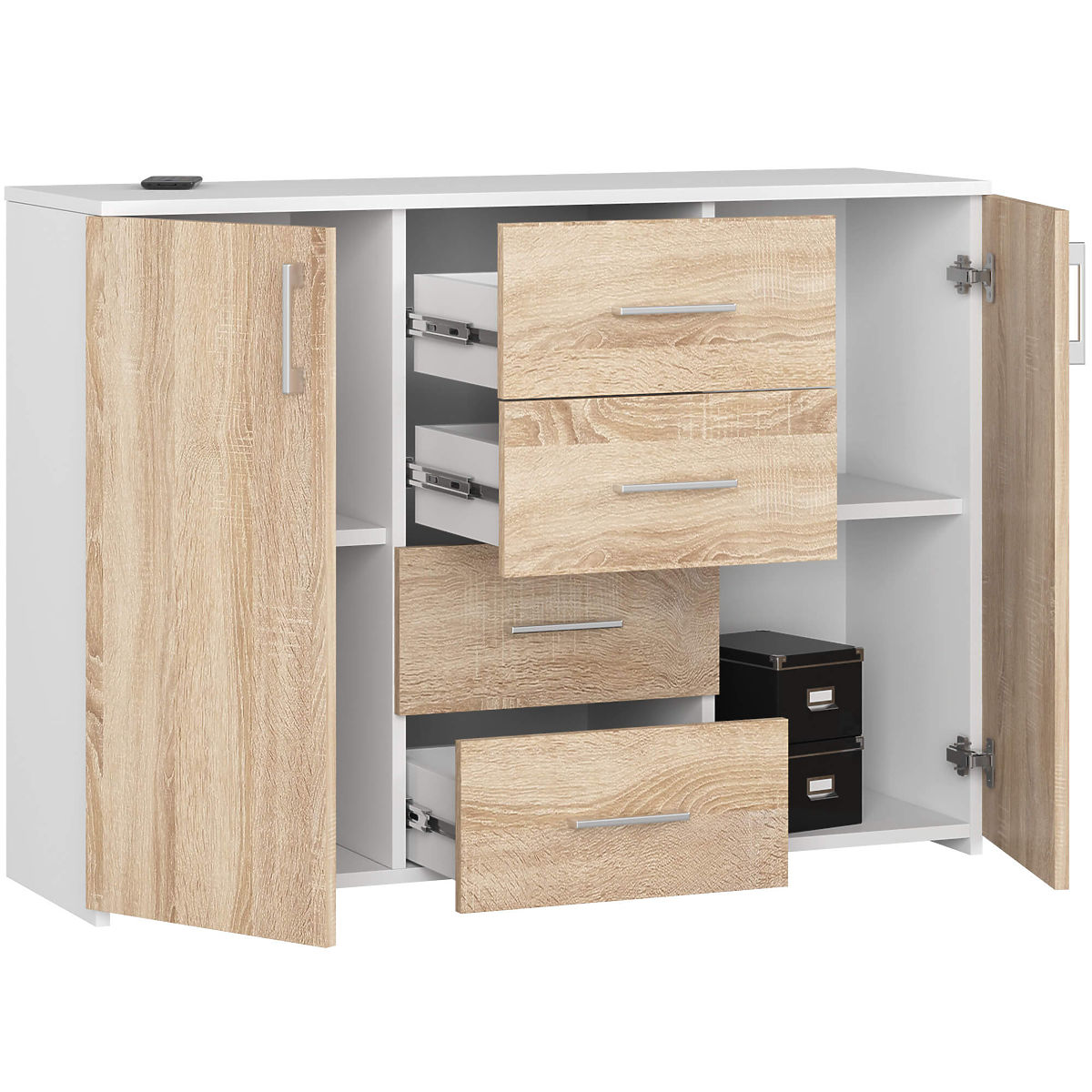 Komoda z laminirano ploščo, 110x80x35 cm, bela in hrast sonoma. .. več