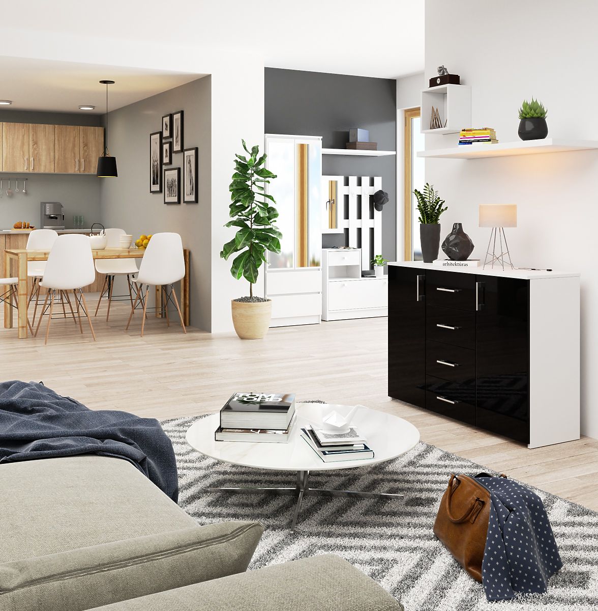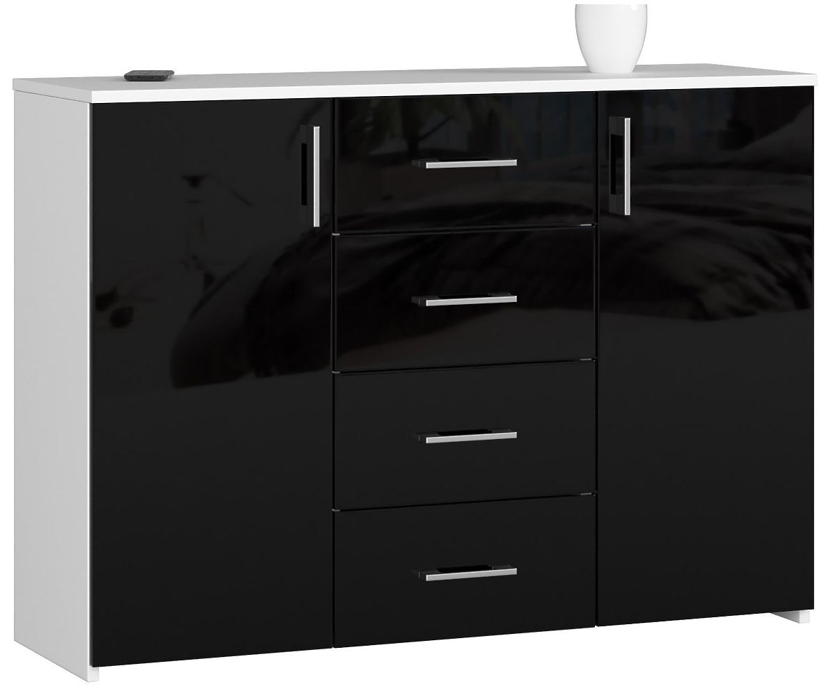 Komoda z visokim sijajem in srebrnimi ročaji. .. več