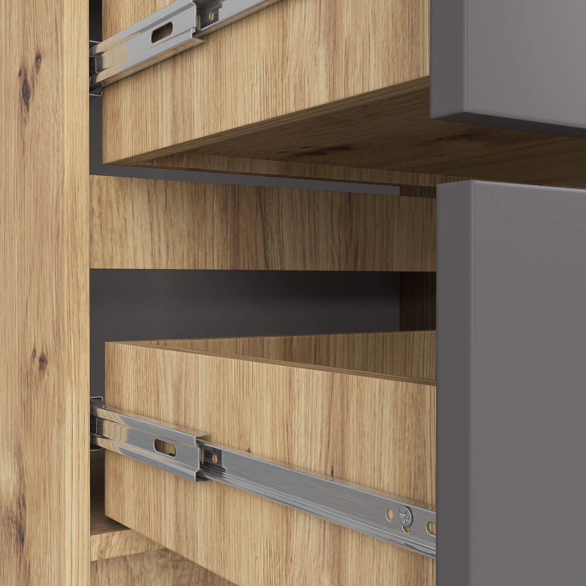 Robovi oblepljeni z ABS robom MEŠANE BARVE KORPUS HRAST ARTISAN / FRONTE GRAFIT SIVA