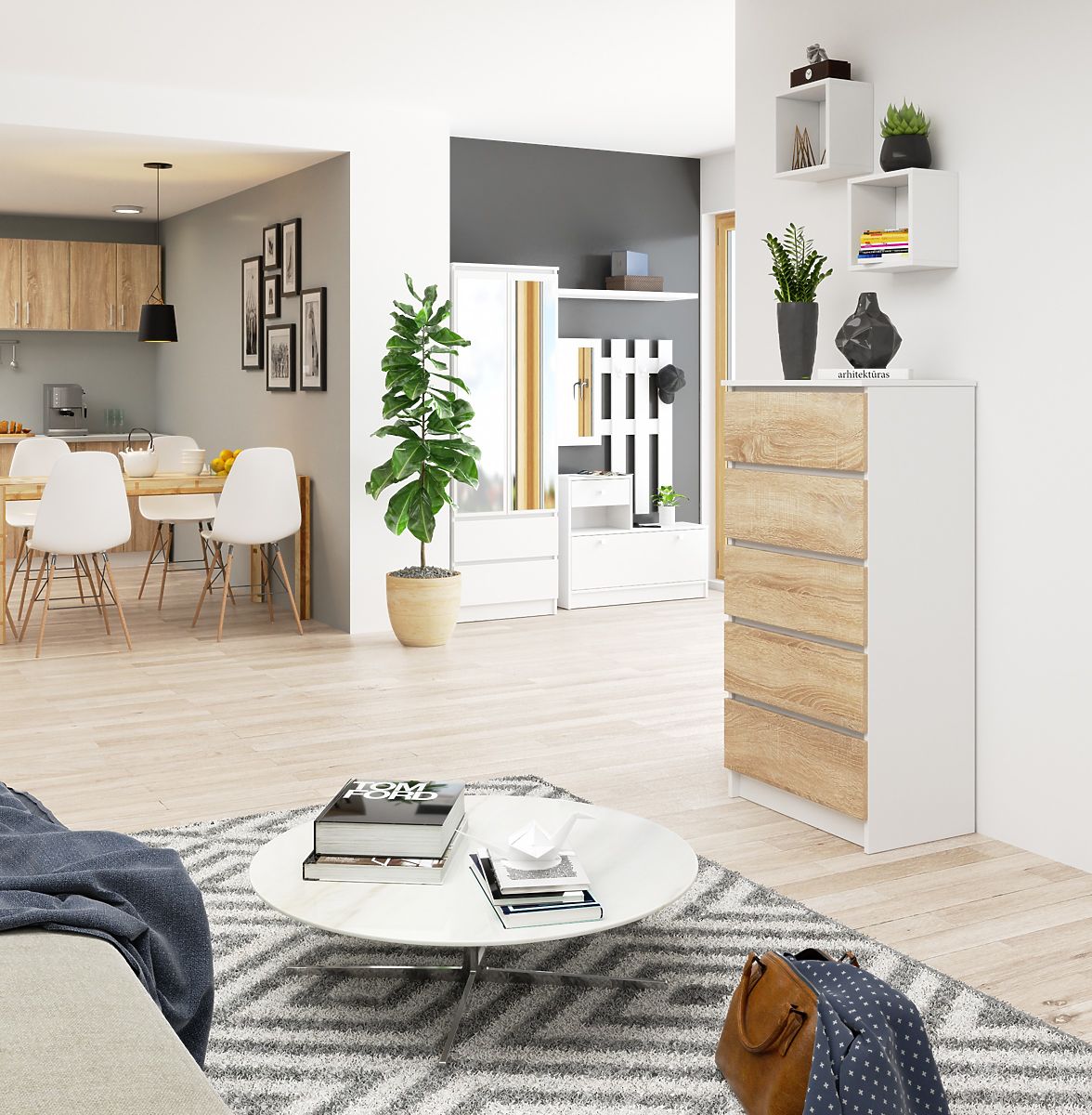 Banaby.si   »   Otroško pohištvo   /   Komode in omare   /   Komode   /   KOMODA K60 5SZ CLP PK BELA / SONOMA