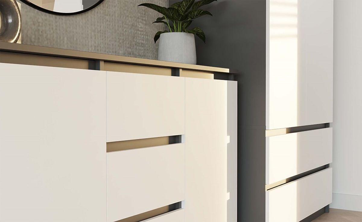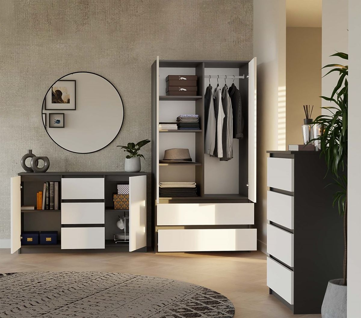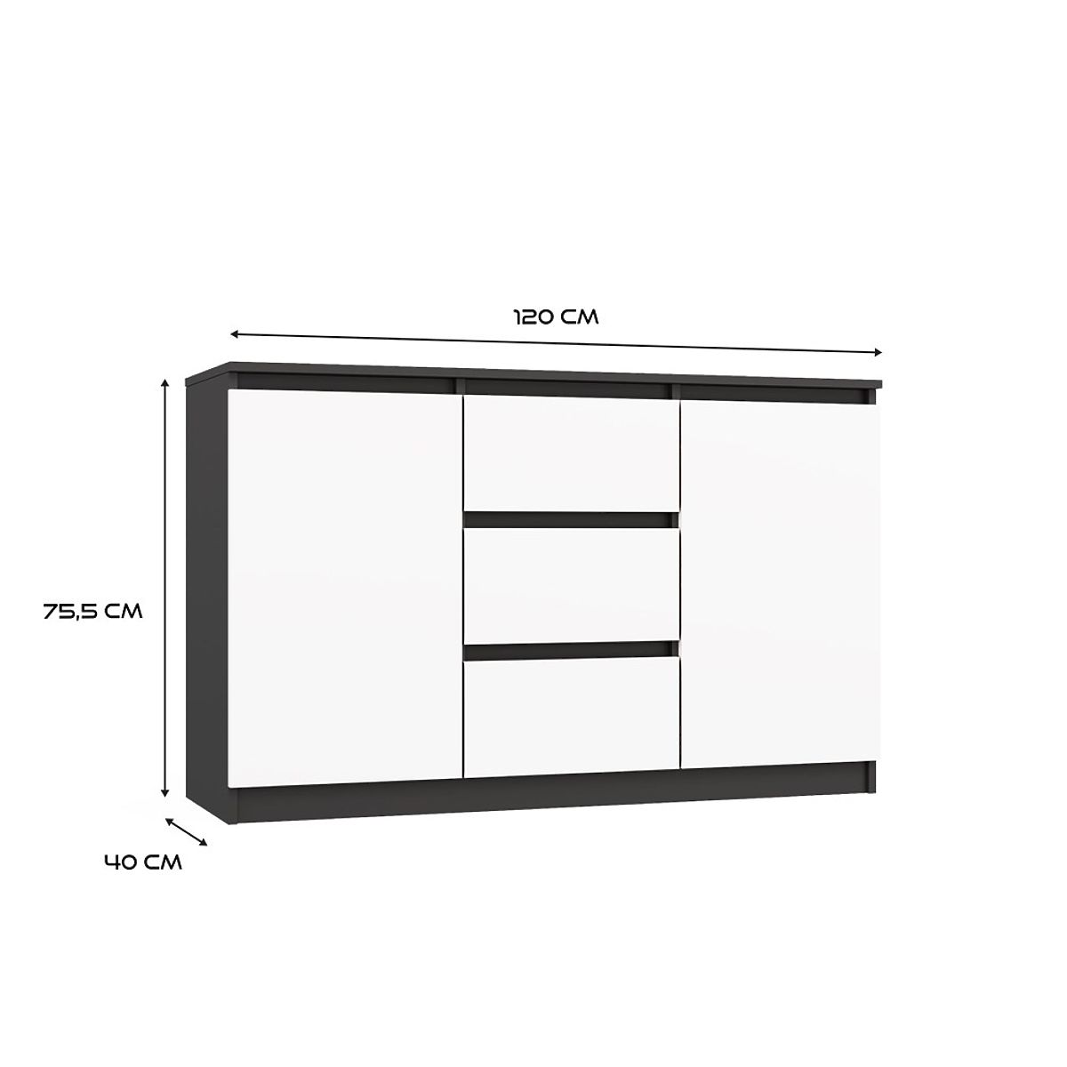 Sodobna komoda z antracitnim korpusom in belimi frontami. .. več
