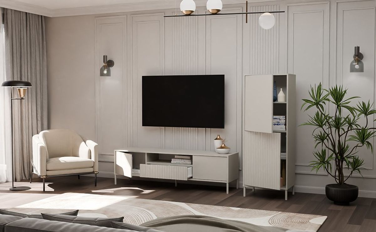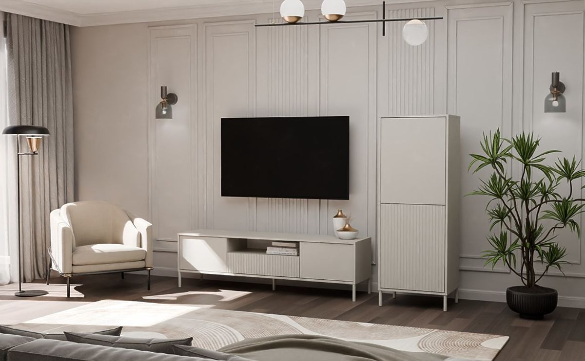 GLAVNE LASTNOSTI POHIŠTVA:Vitrina KAMARO 2DK SLIM/GLADKI KAŠMIR se odlično ujema z ostalim pohištvom iz kolekcije KAMARO, kot so TV omarica, komoda ali druge vitrine. Ustvarite harmonične sestave, prilagojene vašim potrebam in življenjskemu slogu!