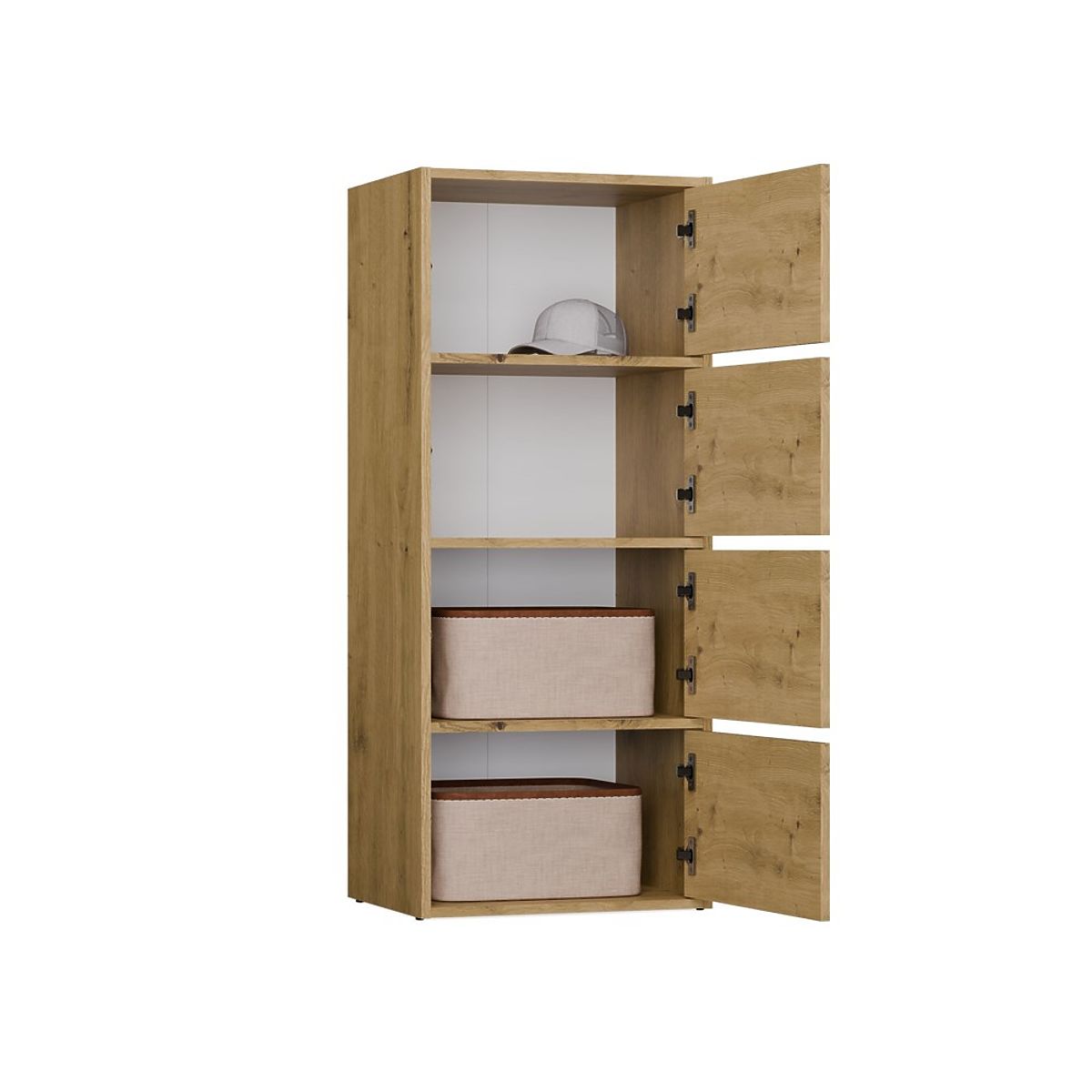 Zahvaljujoč prostornim policam, skritim za gladkimi vrati, komoda nudi veliko prostora za shranjevanje in olajša vzdrževanje reda v vsakem prostoru.