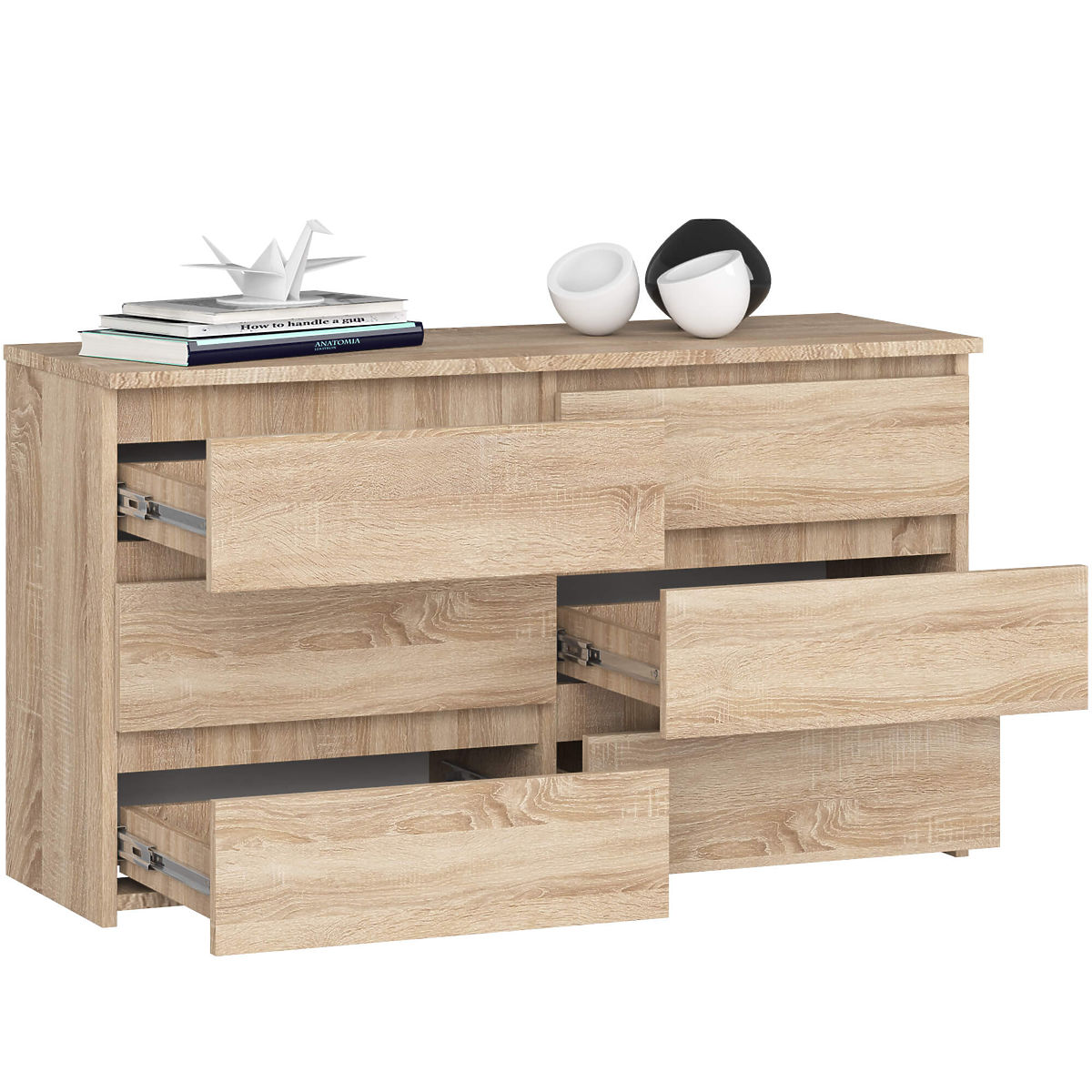 Komoda hrast sonoma s šestimi predali za prostorno shranjevanje. .. več