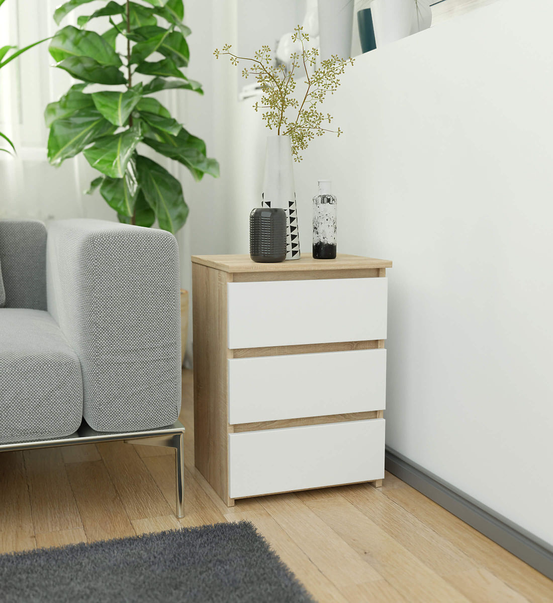 Nočne omarice so priljubljena vrsta pohištva, ki se postavi poleg postelje. Na njej se najpogosteje nahaja svetilka, medtem ko so v notranjosti predmeti, ki olajšajo počitek in spanje. Osebe, ki iščejo elegantno komodo, bi morale biti pozorne na nočno omarico CL3 40 cm v barvi hrast sonoma z belimi sprednjimi ploščami. Čudovito se bo podala v vsako spalnico. Lahko se postavi tudi v otroško sobo.