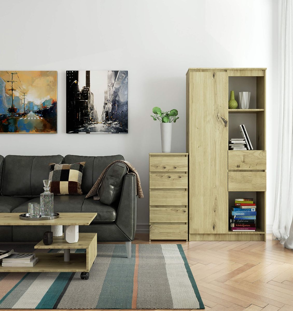 - eleganten videz - komoda je preprosta v obliki, odlikuje jo stilna barva hrast artisan,