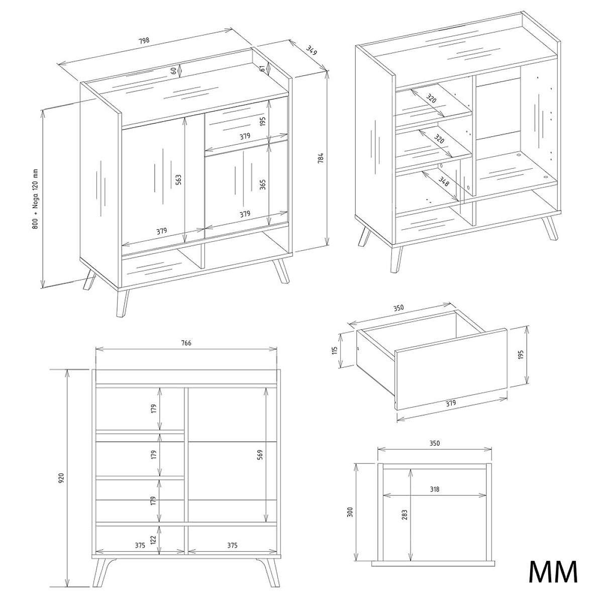 Preprosta oblika, fronte brez ročajev in visoke noge v skandinavskem slogu dajejo komodi lahkotnost in moderen značaj.