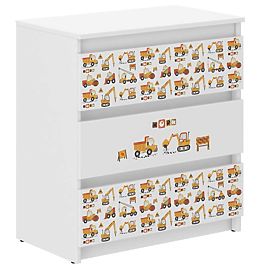 Bela komoda z motivom gradbenih strojev je izdelana iz laminiranega lesenega materiala. Preprost dizajn s simpatičnim potiskom se odlično prilega vsaki otroški sobi.