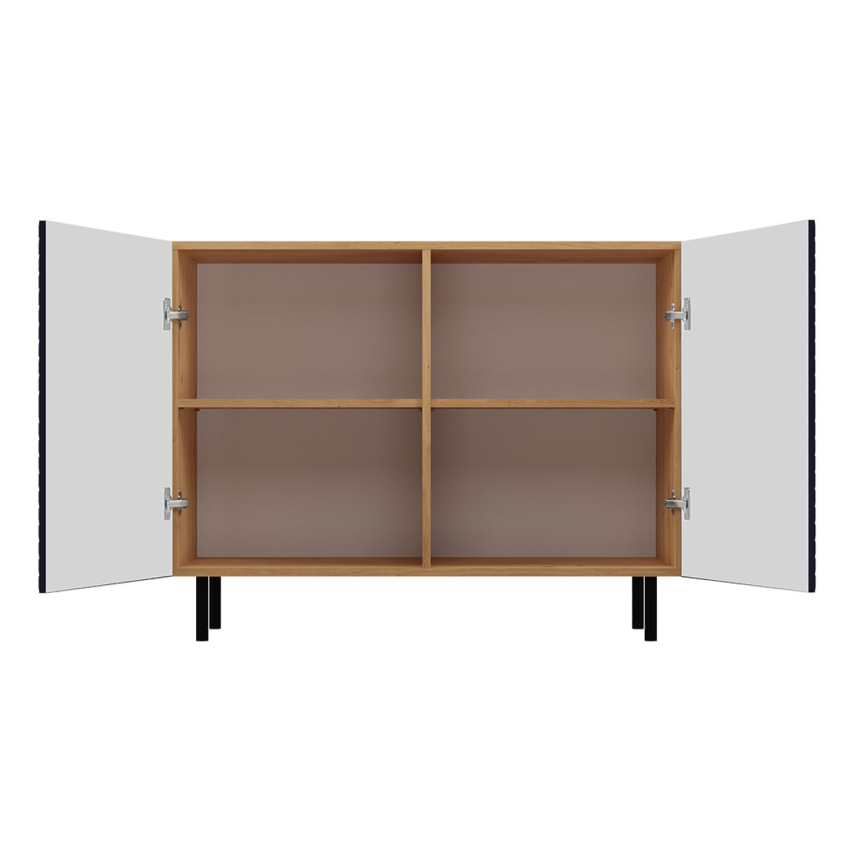 Notranjost komode je sestavljena iz polic, ki pomagajo pri organizaciji stvari. Lažje boste našli, kar iščete.