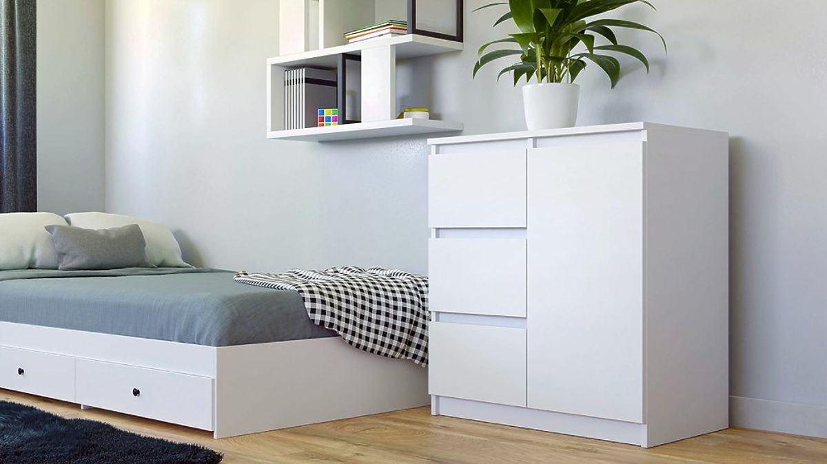 Moderna komoda 1D3S je funkcionalno in prostorno pohištvo, ki bo opremilo notranjost vaše spalnice, dnevne sobe ali otroške sobe.