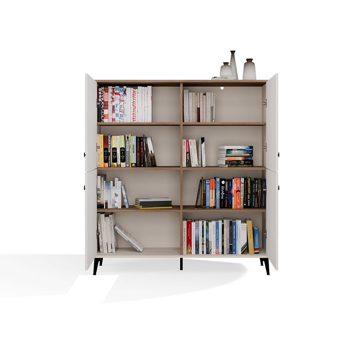 Model je opremljen s štirimi sprednjimi stranmi s tihim zapiranjem, za katerimi se skriva kar osem praktičnih polic – idealnih za shranjevanje knjig, dokumentov, tekstila ali vsakodnevnih dodatkov.
