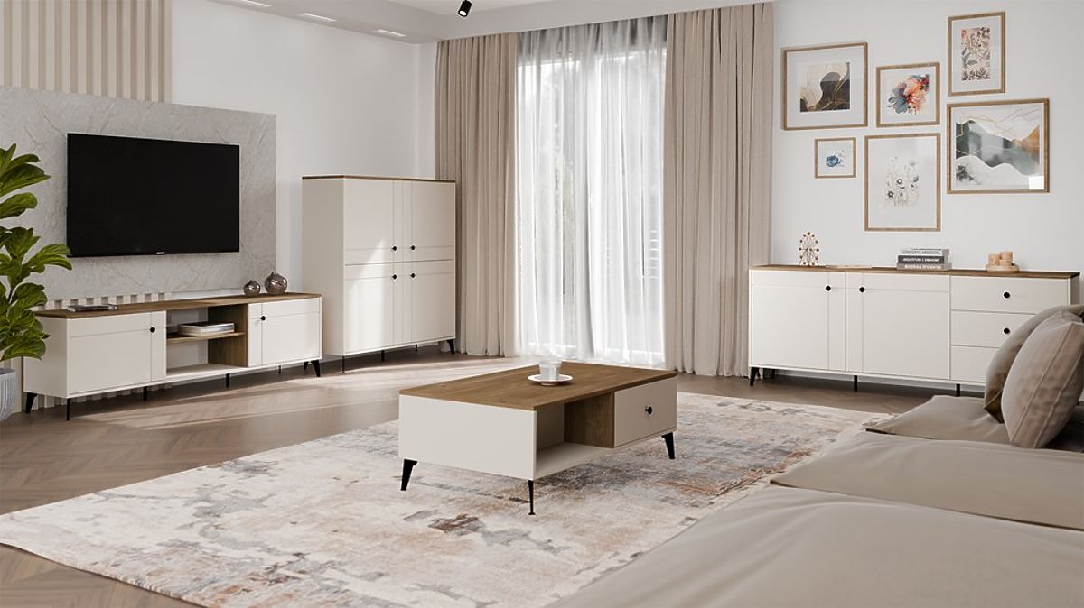 Komoda POINT 4D je zasnovana za tiste, ki cenijo stil, funkcionalnost in visoko kakovost izdelave. Kombinacija modne kašmirske barve z naravnim dekorjem deske Hrast Castello daje pohištvu brezčasen značaj, ki odlično dopolnjuje tako moderne kot klasične interiere.