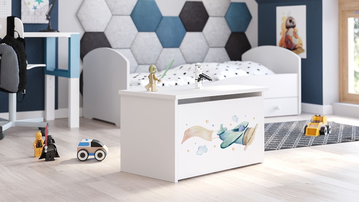 Banaby.si » Otroško pohištvo / Komode in omare / Škatla za igrače / Skrinja za igrače Daria bela s potiskom Letalo