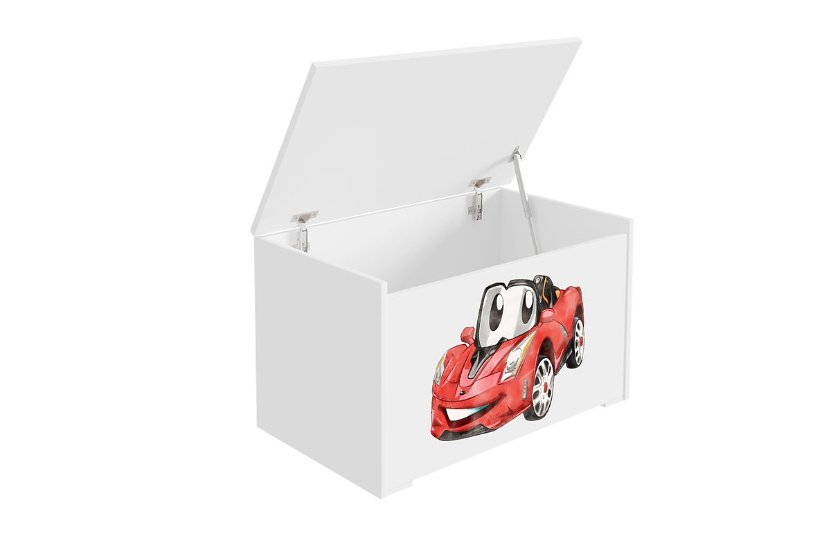 Bela skrinja za igrače z dirkalnim avtomobilom in UV tiskom. .. več