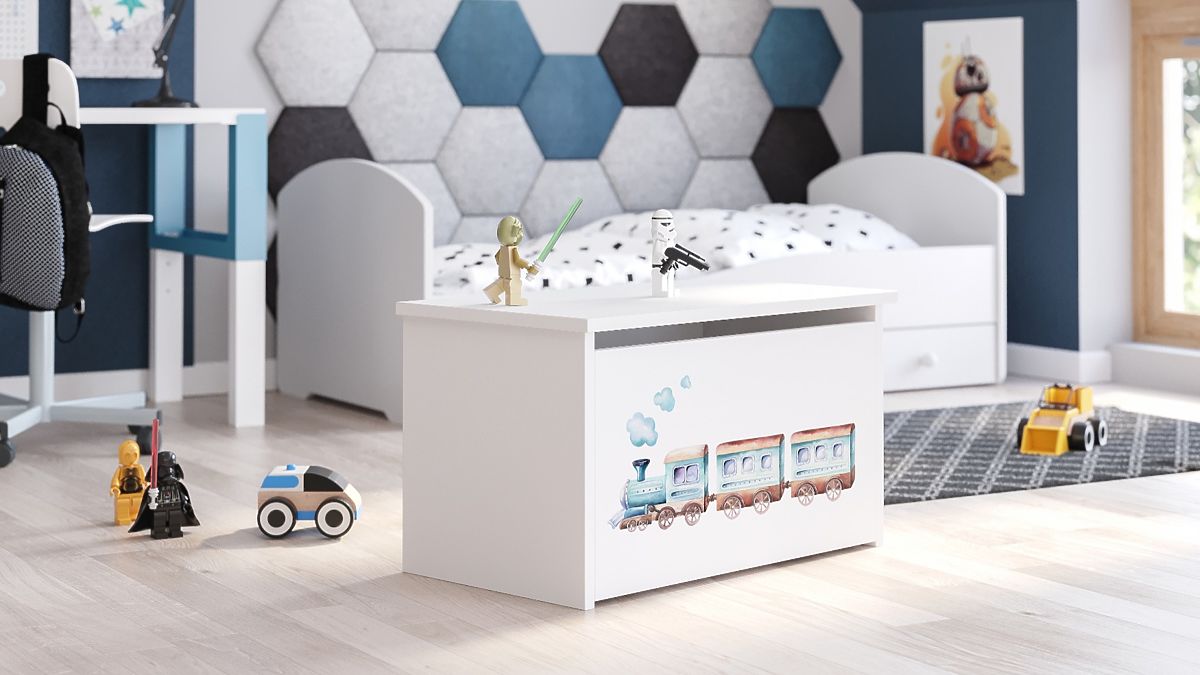Banaby.si » Otroško pohištvo / Komode in omare / Škatla za igrače / Skrinja za igrače Daria bela z motivom vlaka