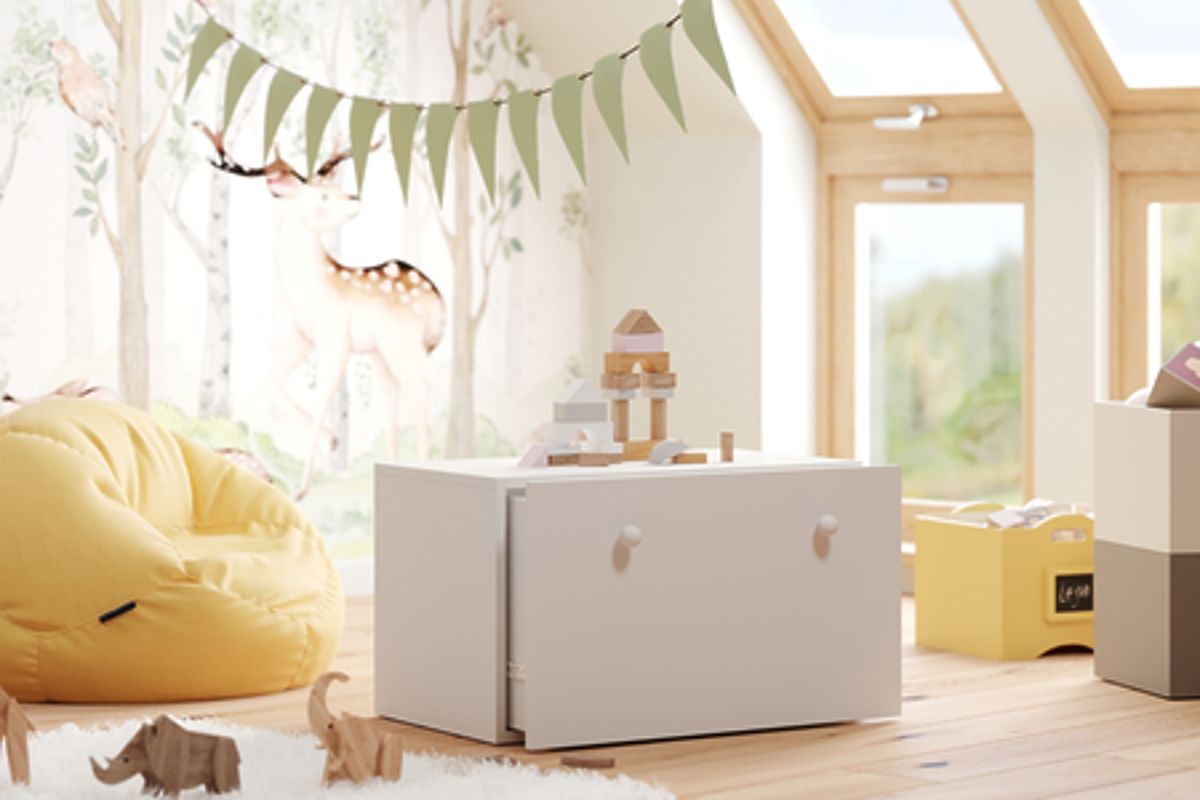 Skrinja za igrače INGA je odličen način za organizacijo prostora v otroški sobi, spalnici ali predsobi. Zahvaljujoč prostorni notranjosti omogoča udobno shranjevanje igrač, odej, oblačil in drugih drobnarij, kar pomaga ohranjati red v vsakem prostoru. Njena funkcionalna zasnova zagotavlja hiter in udoben dostop do shranjenih stvari.