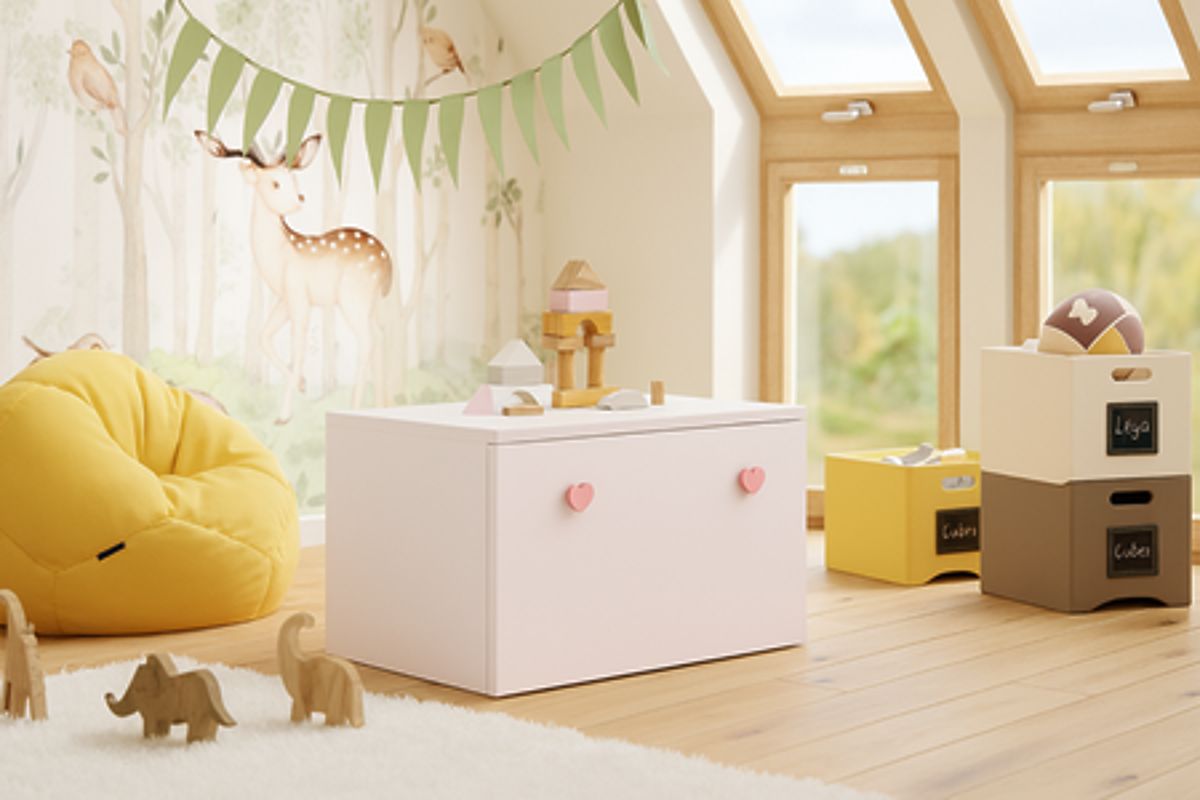 Skrinja za igrače INGA je odličen način za organizacijo prostora v otroški sobi, spalnici ali predsobi. Zahvaljujoč prostorni notranjosti omogoča udobno shranjevanje igrač, odej, oblačil in drugih drobnarij, kar pomaga ohranjati red v vsakem prostoru. Njena funkcionalna konstrukcija zagotavlja hiter in udoben dostop do shranjenih stvari.