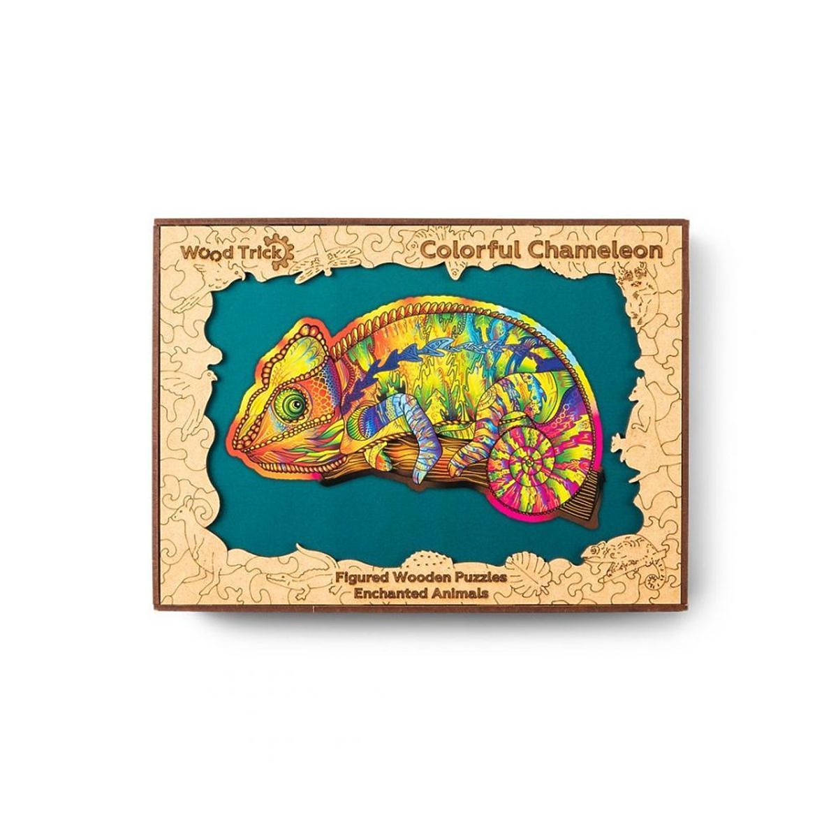 Lepo obarvana lesena sestavljanka v obliki kameleona bo odlična ideja za darilo. Sestavljanke so sestavljene iz 143 kosov, od katerih so nekateri v obliki .. več