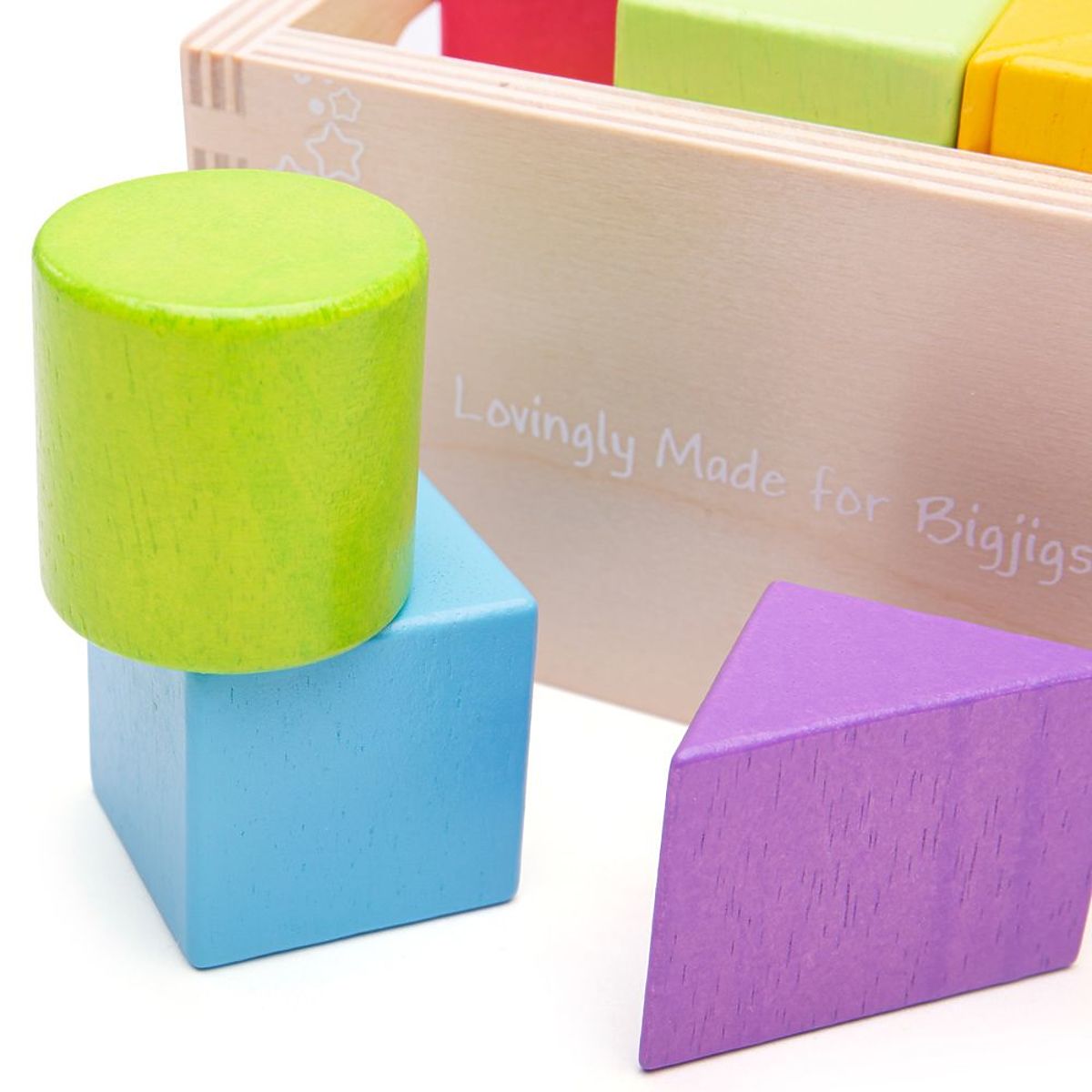 Lesene kocke različnih oblik in barv za razvoj spretnosti. .. več