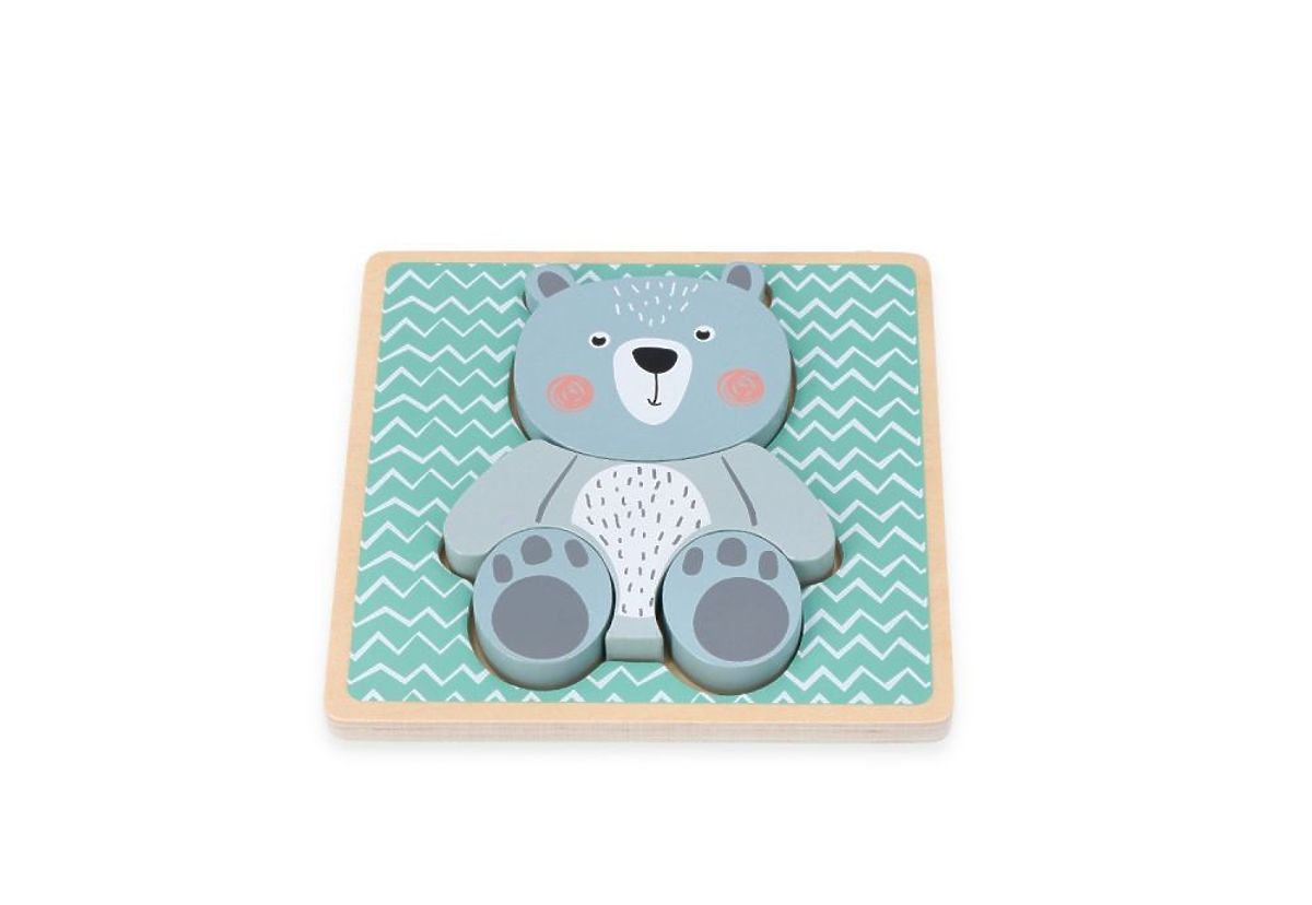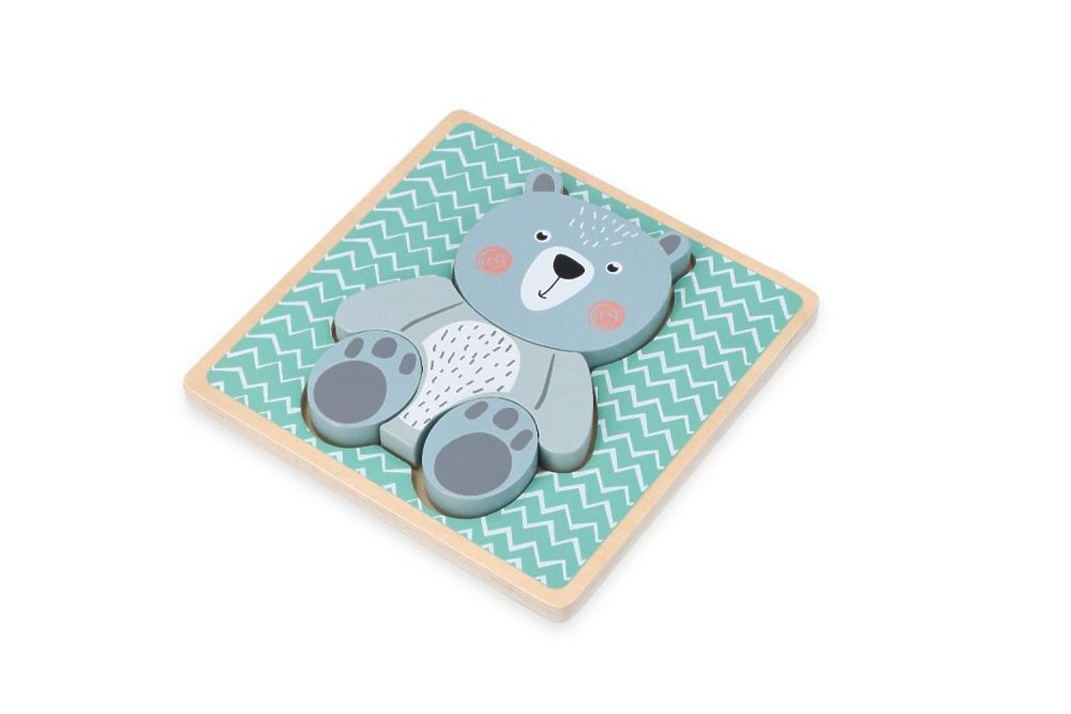 Sestavljanka je sestavljena iz osnove in štirih kock za sestavljanje medvedka. Otrok mora ne le sestaviti Ríšo v celoto, ampak tudi prilagoditi kocke osnovi. Kocke lahko sestavljate tudi zunaj osnove.