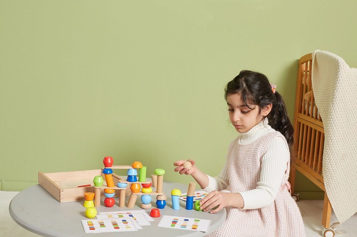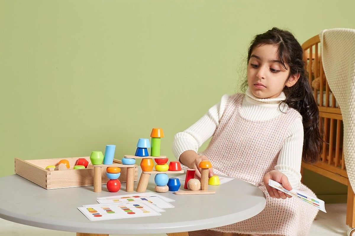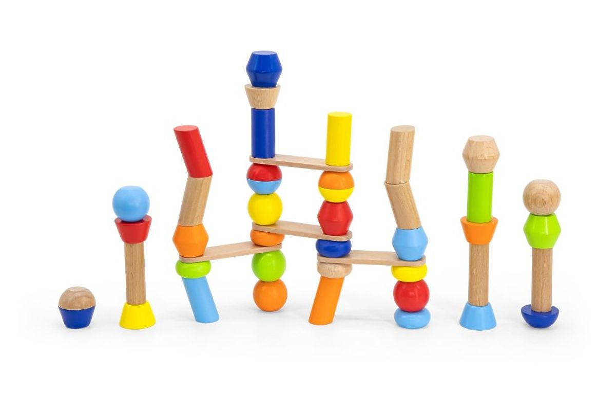 Tradicionalna sestavljanka stolp zdaj v nekoliko drugačni izvedbi z raznolikimi oblikami in barvami. Ta igrača ni le prijetno preživet čas, ampak tudi priložnost za spoznavanje oblik, barv, velikosti in različnih kombinacij teh elementov. Otrok lahko gradi stolpe po lastni presoji ali uporabi priložene karte s tremi stopnjami težavnosti. Gradnja stolpov iz kock razvija ročne spretnosti in spodbuja domišljijo ter ustvarjalnost. Uspešna zabava zagotovljena!